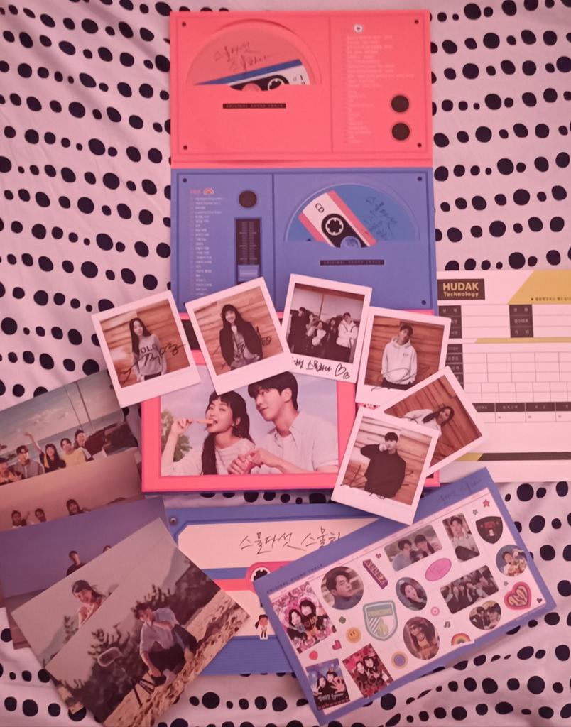 ST OST of 25/21 ๐ผ ๐พ It comes with a certificate of authenticity and the package is very well protected. ๐พ In addition to the contents of the box, the store itself sent a gift poster. ๐พ If you liked the K-Drama you will love every detail of the interior. ๐พ Content: photos of the trip to the beach, polaroid photos of each character with their signatures, stickers, photobook with the lyrics of the songs, and sleeve with the 2 CDs. ๐พ K-POP MERCH is a Kpop record store that is betting on series soundtracks and is bringing more and more.