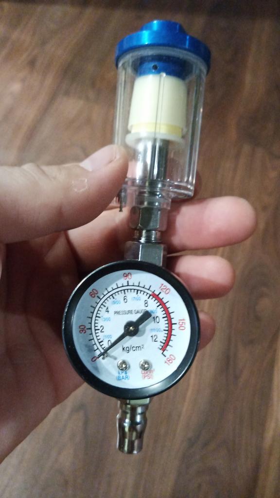 Doesn't show the pressure correctly. And the filter lets condensate through, complete crap.