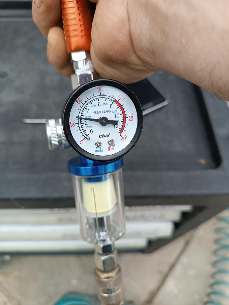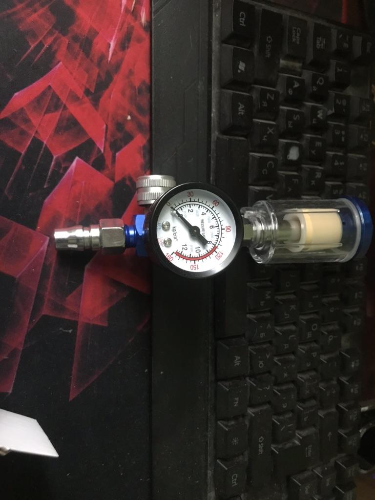 The quality is normal, but the pressure on the pressure gauge starts at 0.8 atm. In the future, when painting, mathematics will have to be dealt with. And quick-release connections are not our standard ...