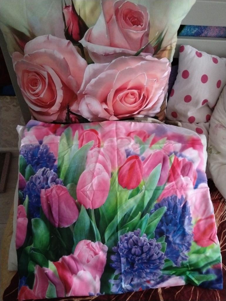 I really like the pillowcases, bright flowers, you can't really see them in the photo because the camera 📷 isn't very good on the phone. I have two small pillows from the sofa, so I ordered them for them and I didn't regret it.