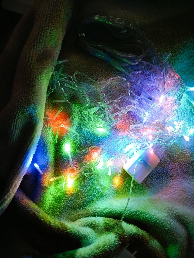 Cool Christmas lights on the window. Neatly packed. My grandchildren and I liked it.