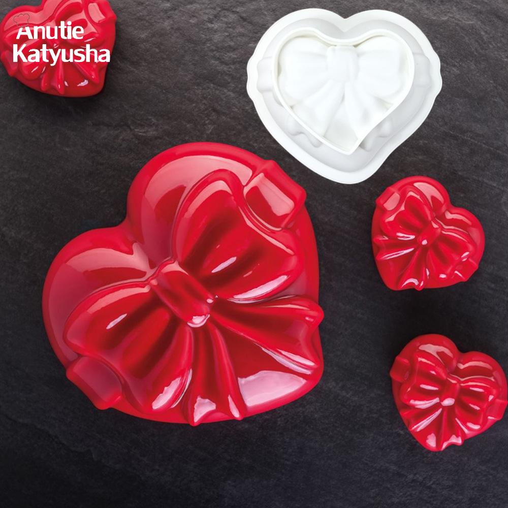 Peach Heart Valentine's Day Love Mousse Cake Mold Single Bow Love Silicone Mold