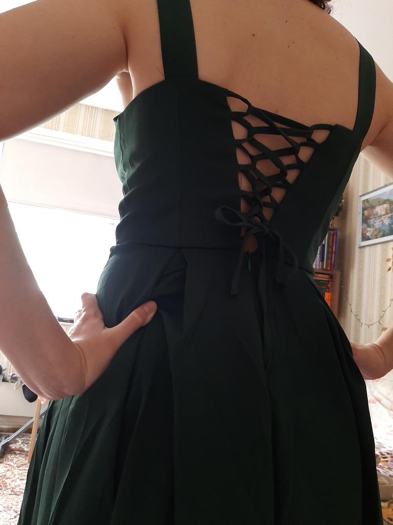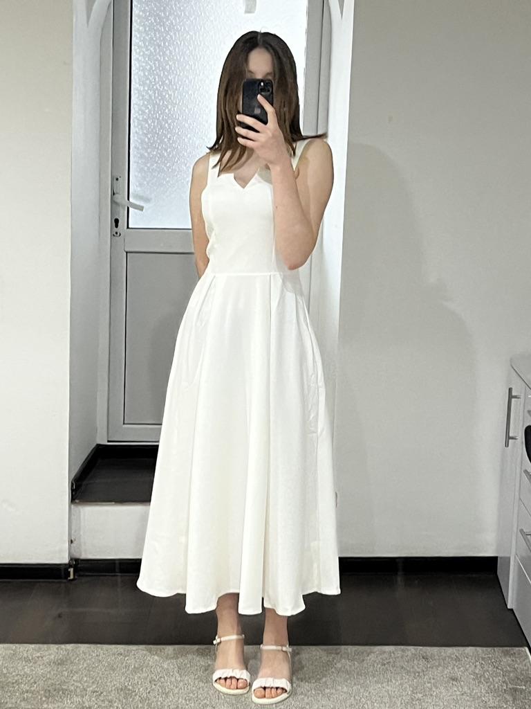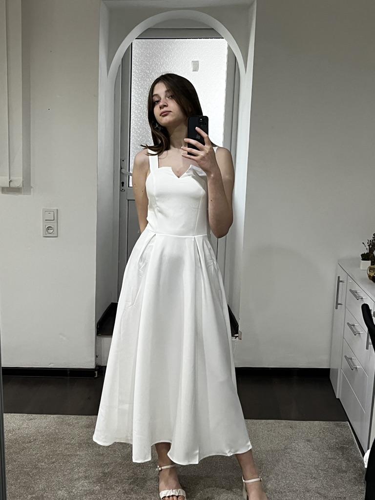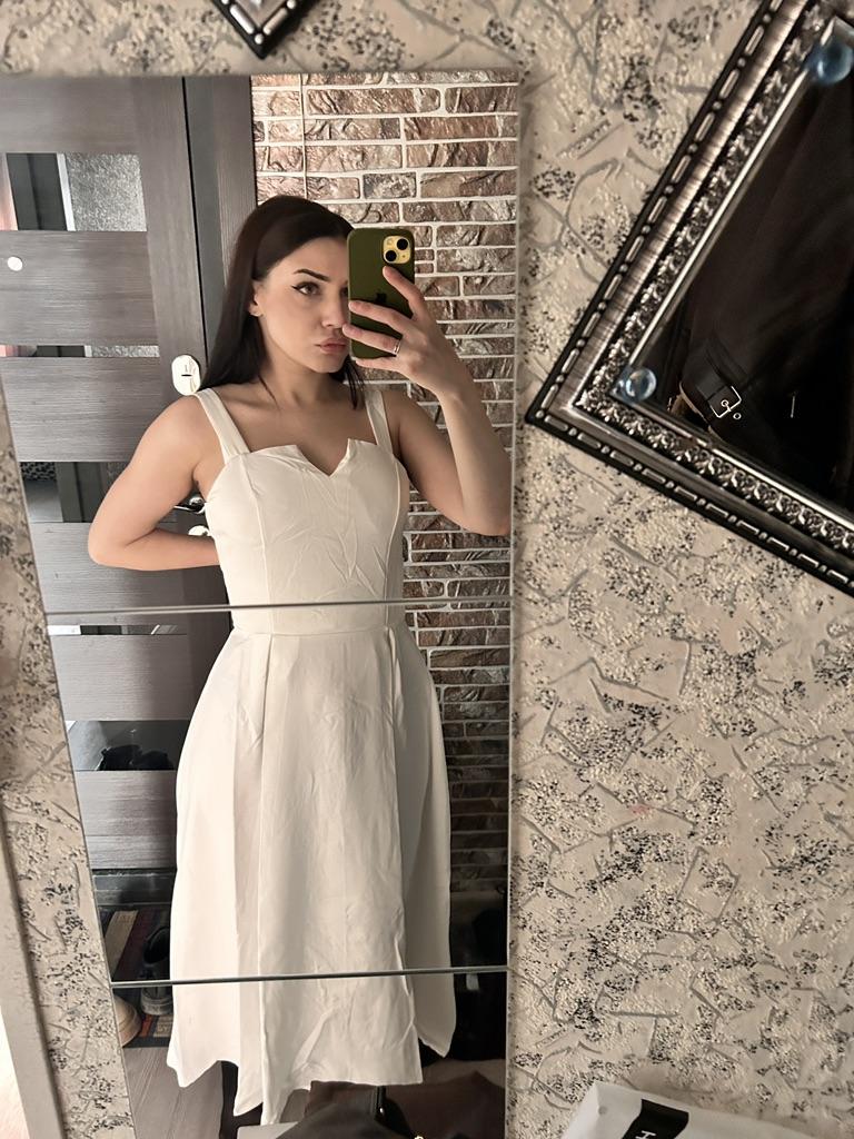 The dress has uneven edges, in some parts it is longer than in the back and in the front, the "cups" sit very high, if I have bigger breasts, the cups sit on my chest. Plus I wear ML, I ordered L and it's very tight, be careful. For ladies with size 0, maybe it's ok, for those with bigger breasts, the dress is not ok at all, especially how it looks in the parts🤷🏻♀️ Oh, and the straps are very short😅