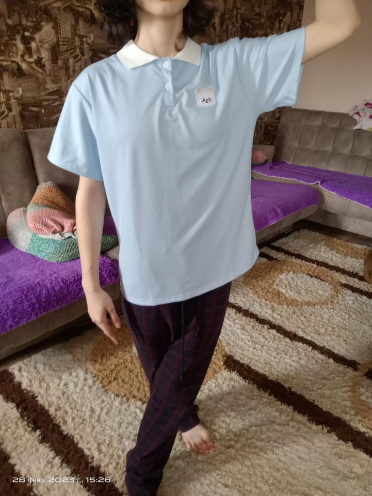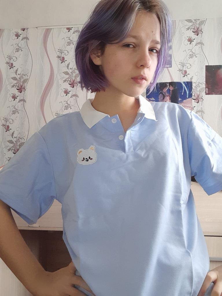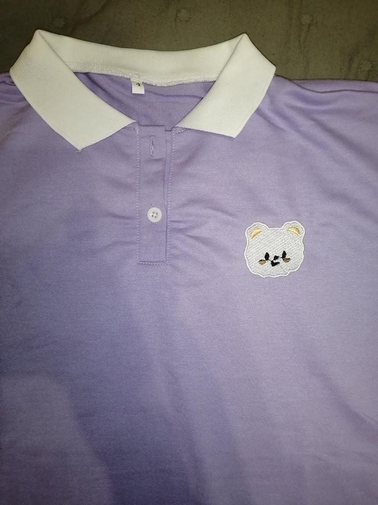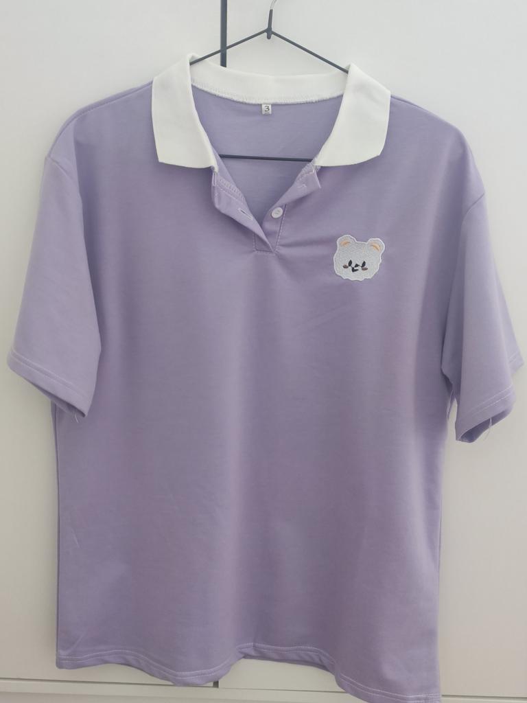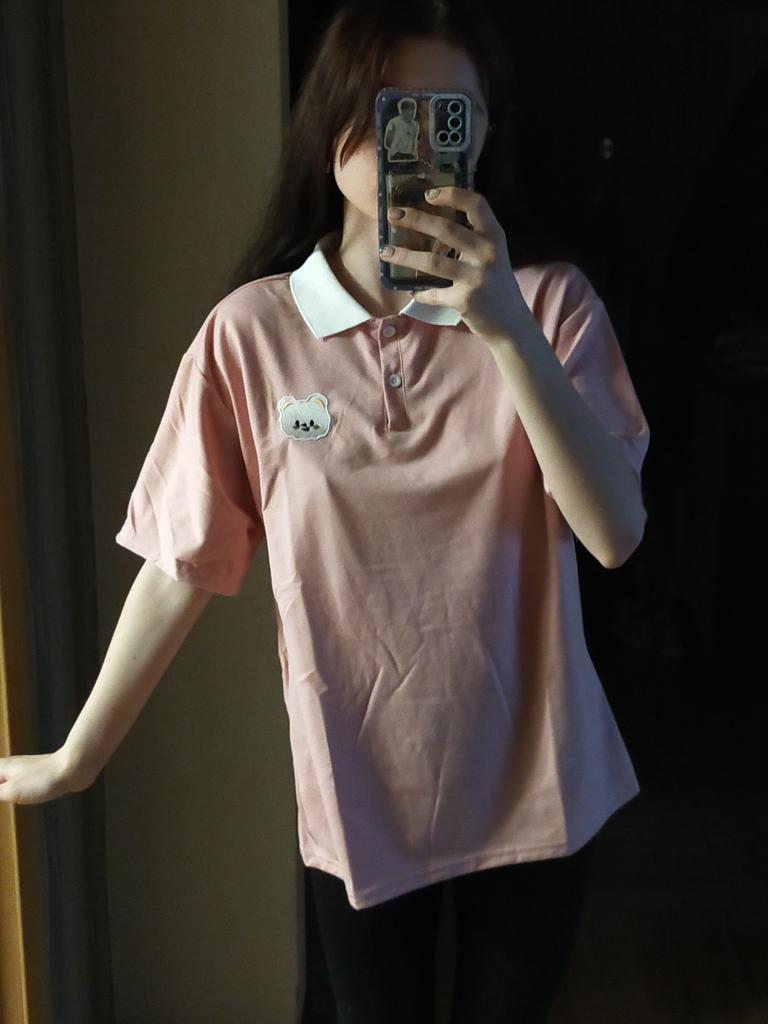 HOUZHOU Polo T-shirt Girl Summer Japanese Cute Print Bear Embroidery Loose Short Sleeve Preppy Style
