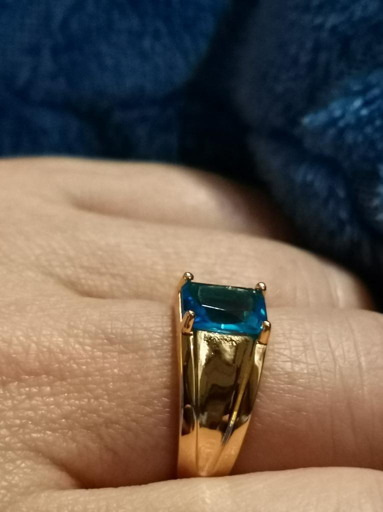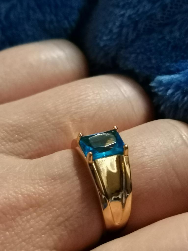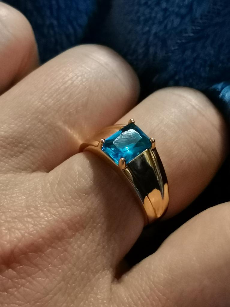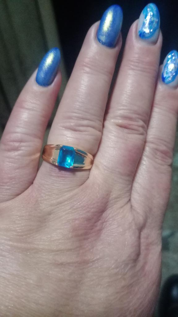 Cool ring, beautiful, neat, just like in the photo. It looks decent, others think it’s gold😁. The stone is bright, transparent, not cloudy, the size matches, it sits comfortably on the finger. I wore it for several days in a row all day, washed my hands - it did not darken under my finger and the color itself did not change.