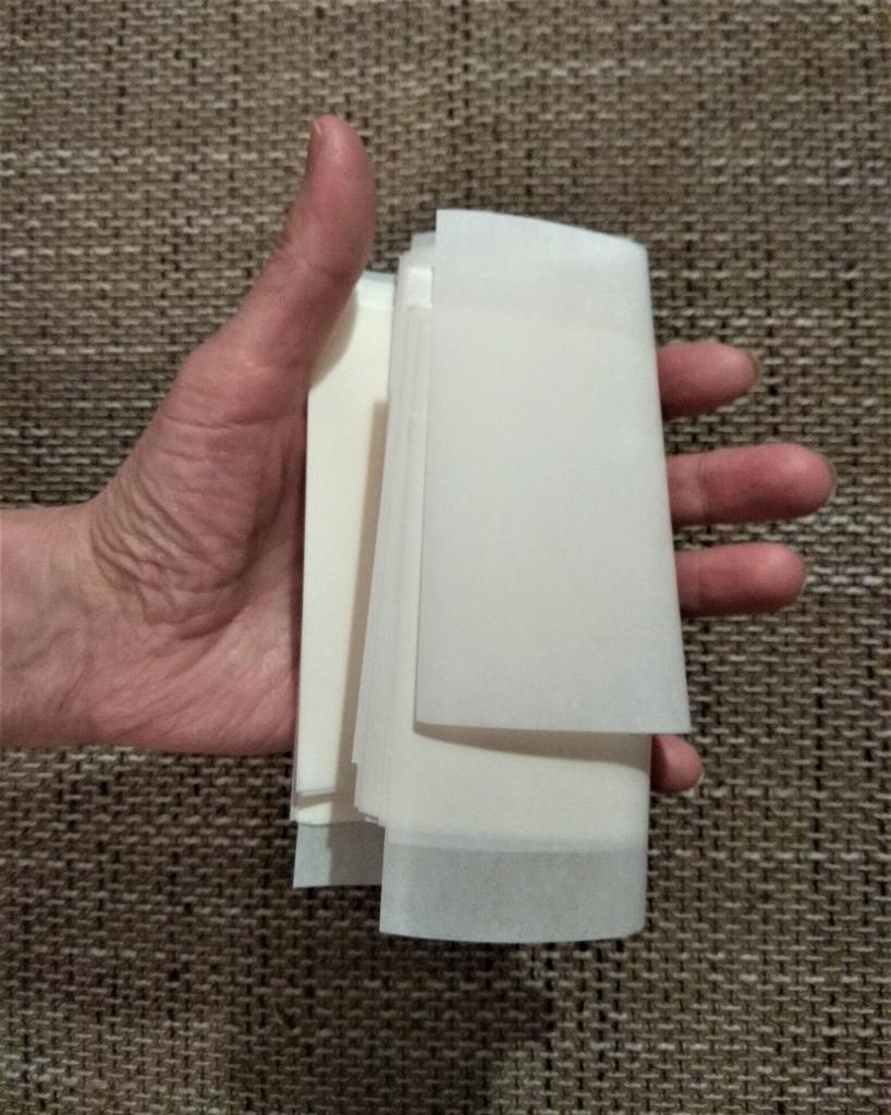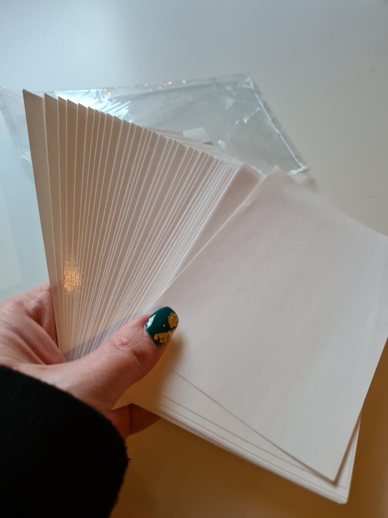 Exactly what I ordered, material a little plastic under the fingers and sheet the size of a hand, thank you