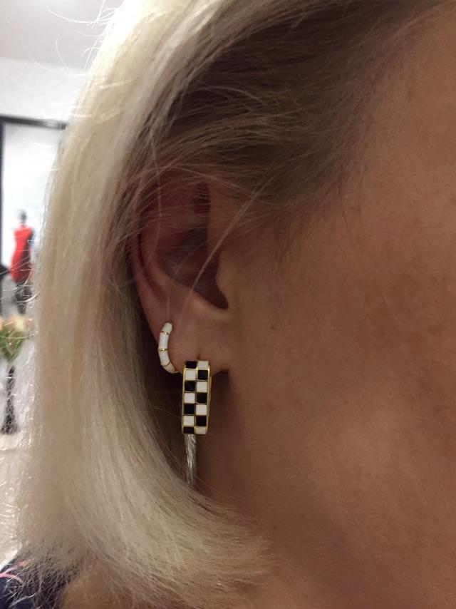 Classic Women's Fashion Jewelry High Quality Checkerboard Simple Black and White Plaid Earrings Hand Enamel Stud Earrings