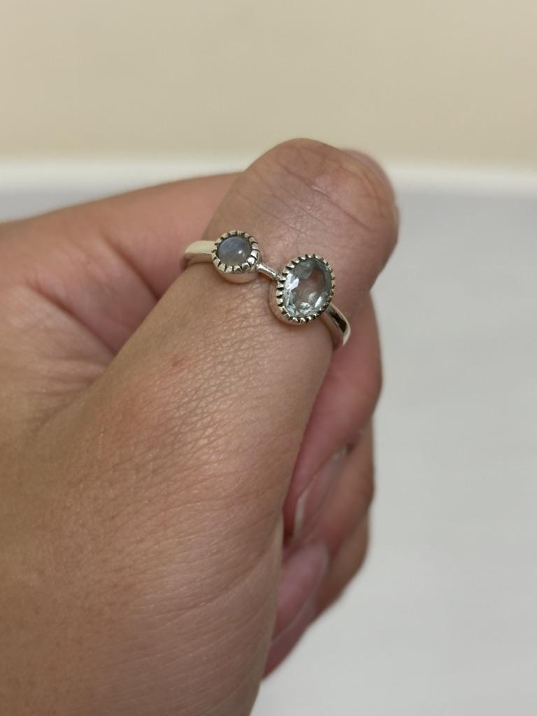 Blue Topaz Ring, Handmade Jewelry, 925 Sterling Silver, Women Jewelry, Gifts For Her, Moonstone Ring, Gemstone Jewelry