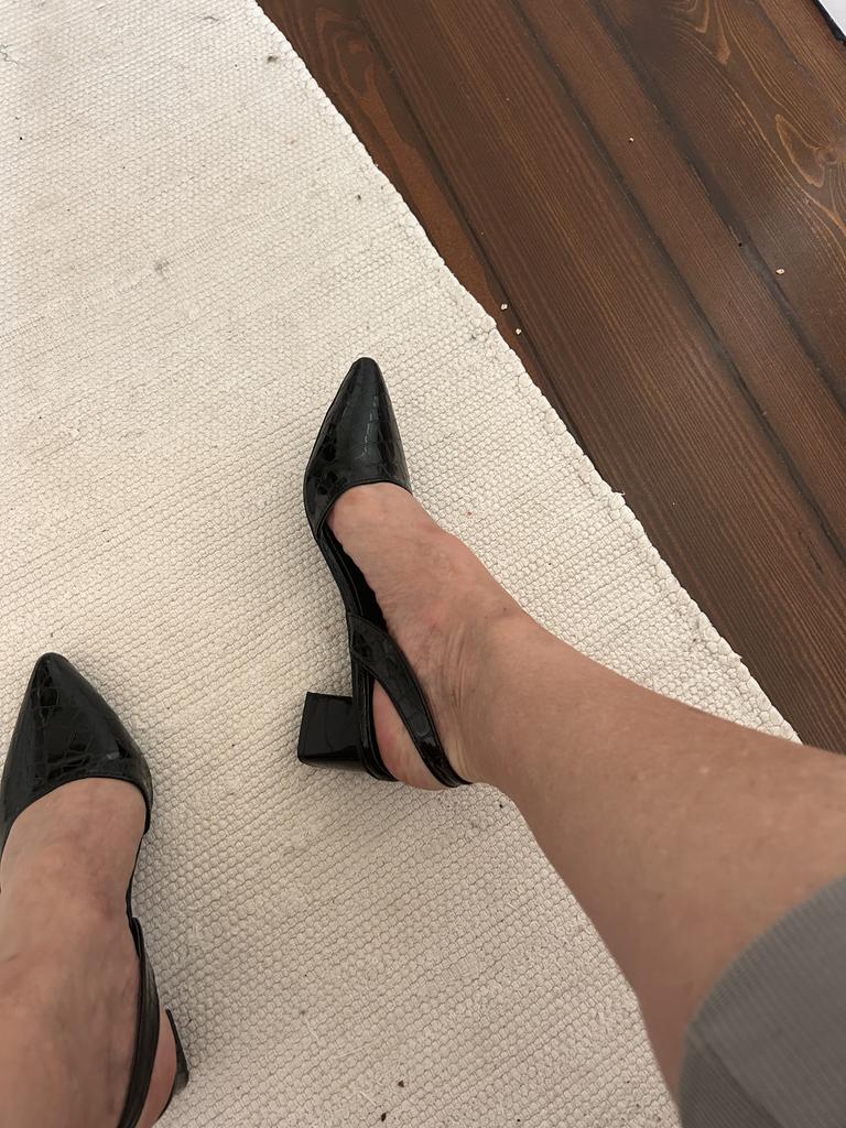 an elegant option, comfortable, the heels are not high, you can wear them all evening without having anywhere else to wear them.