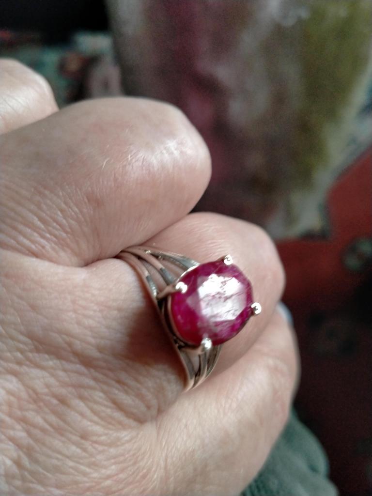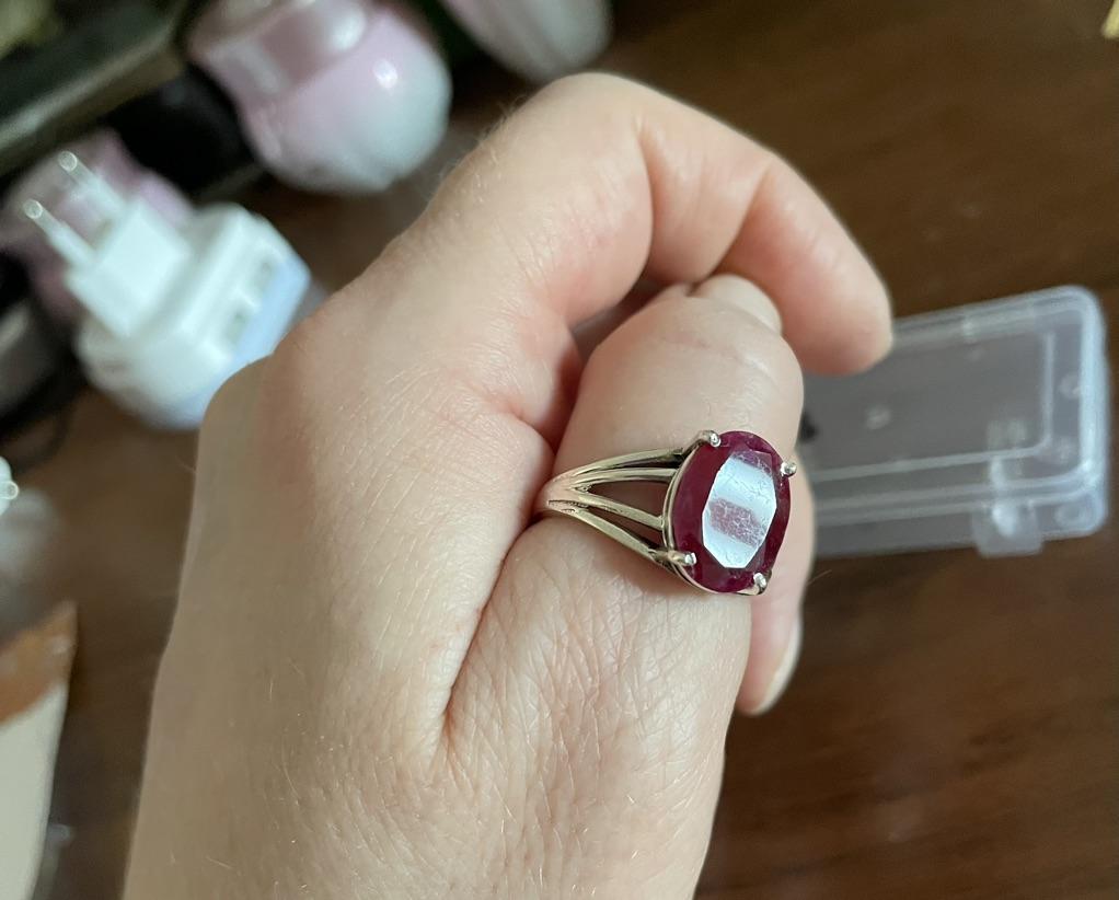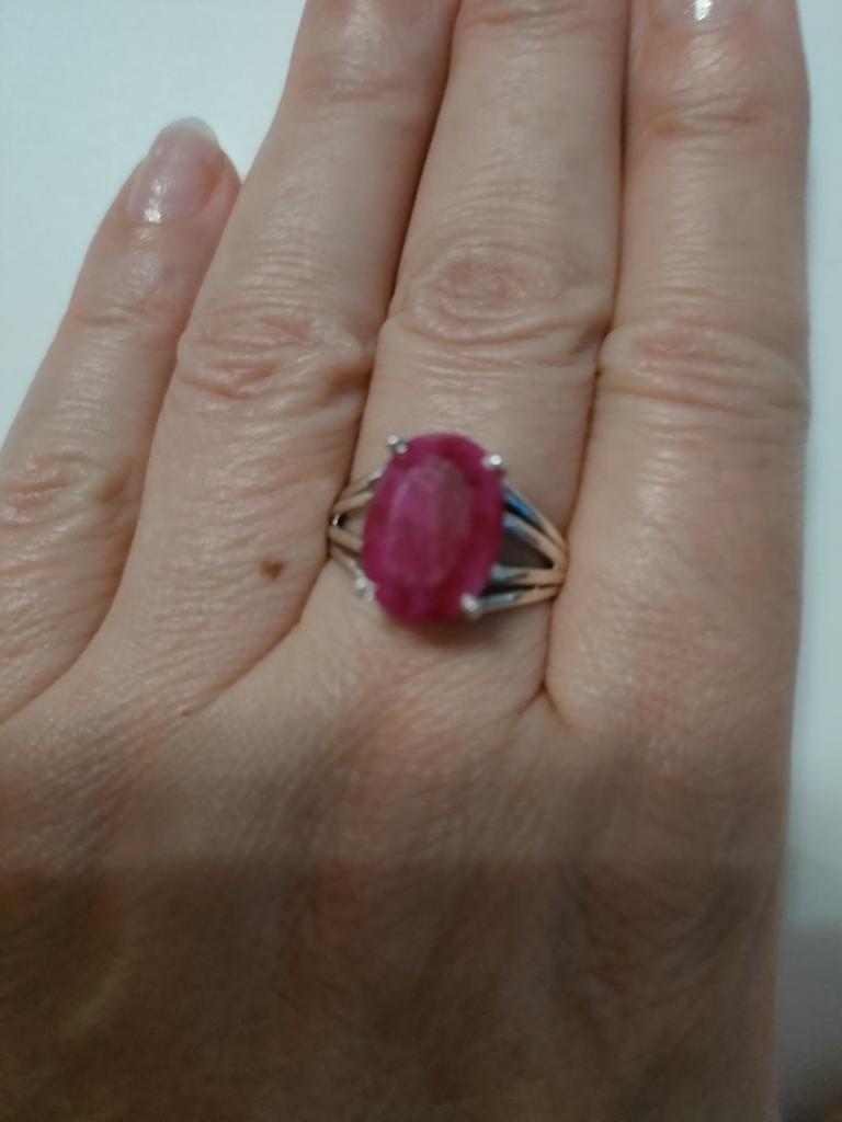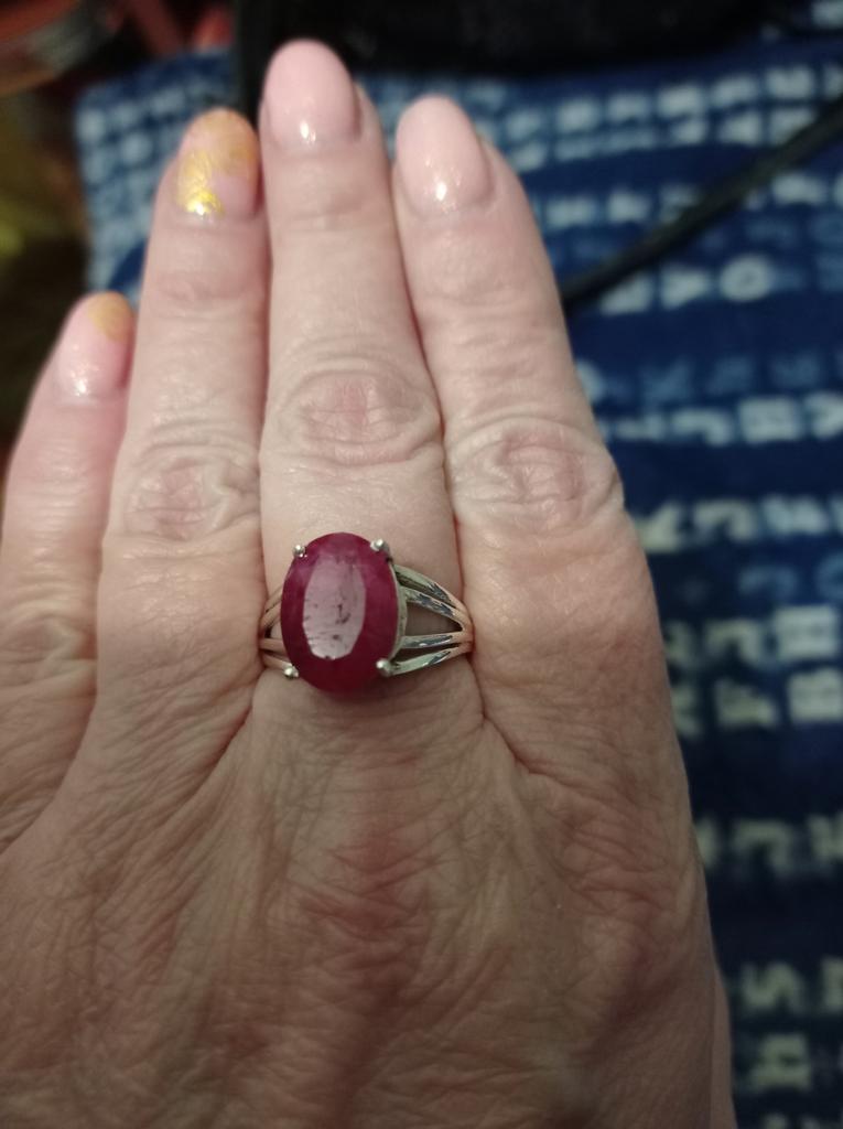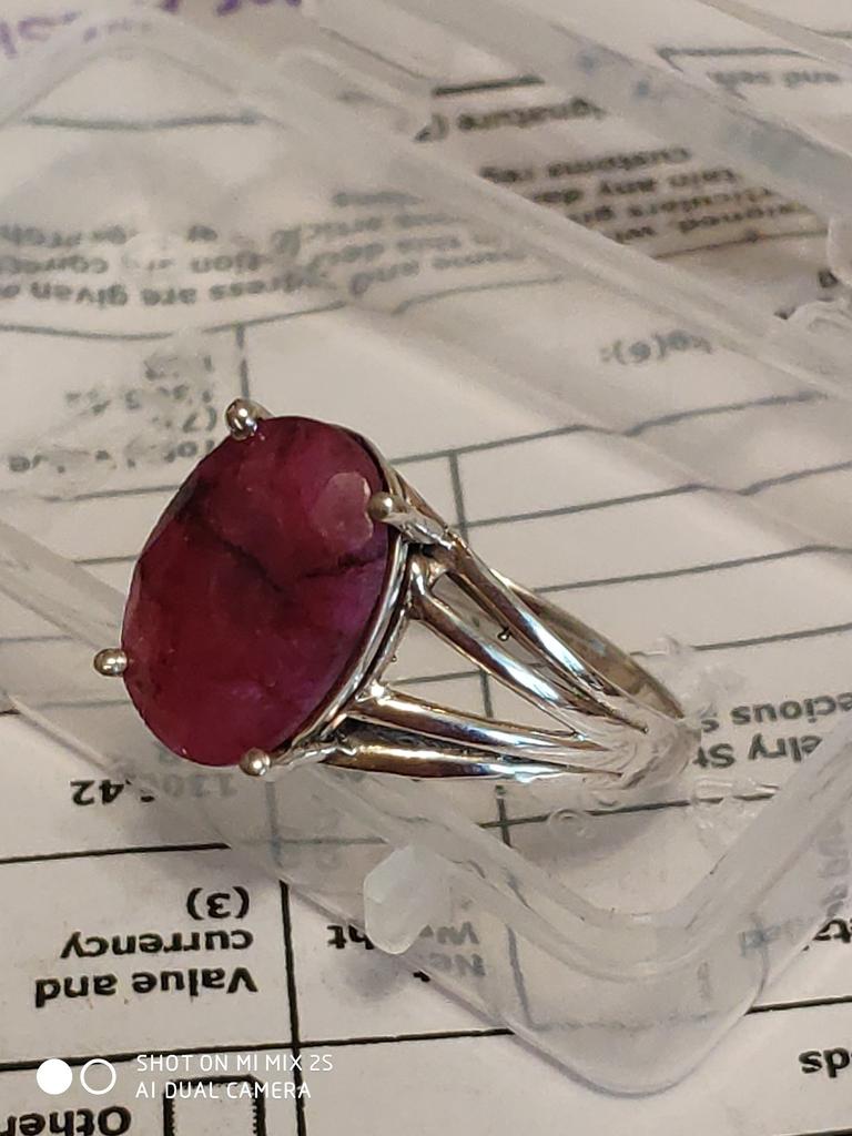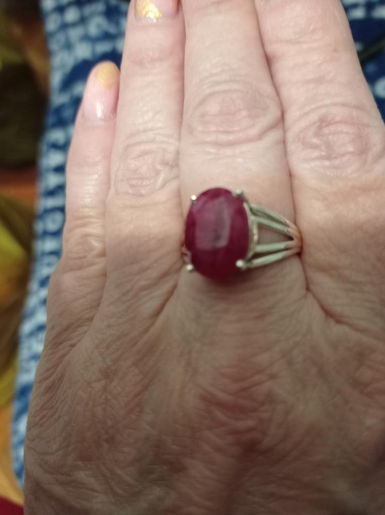 Very satisfied, the stone is large, with inclusions, dark ruby hue, thank you