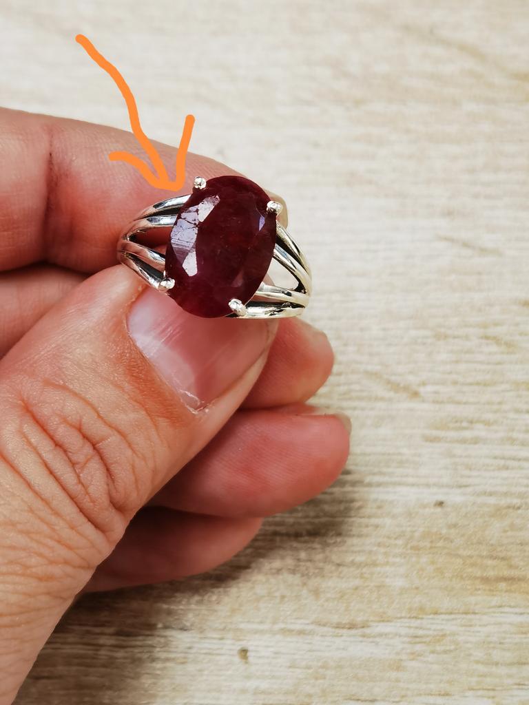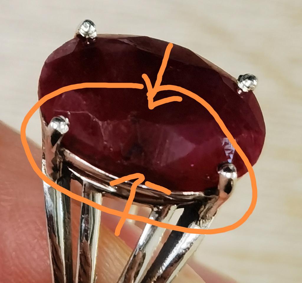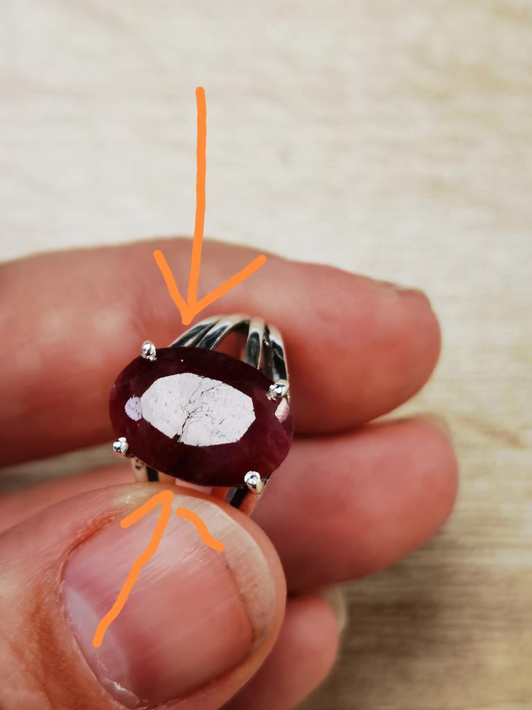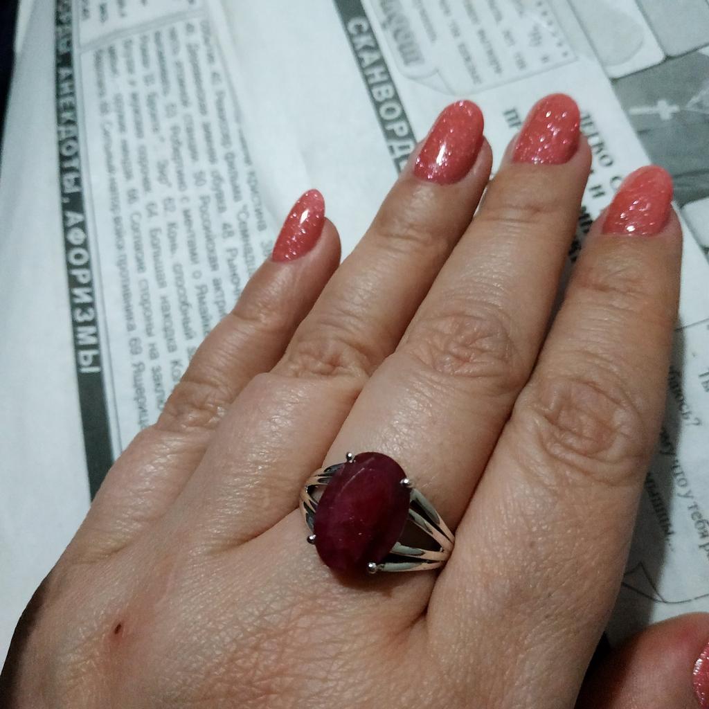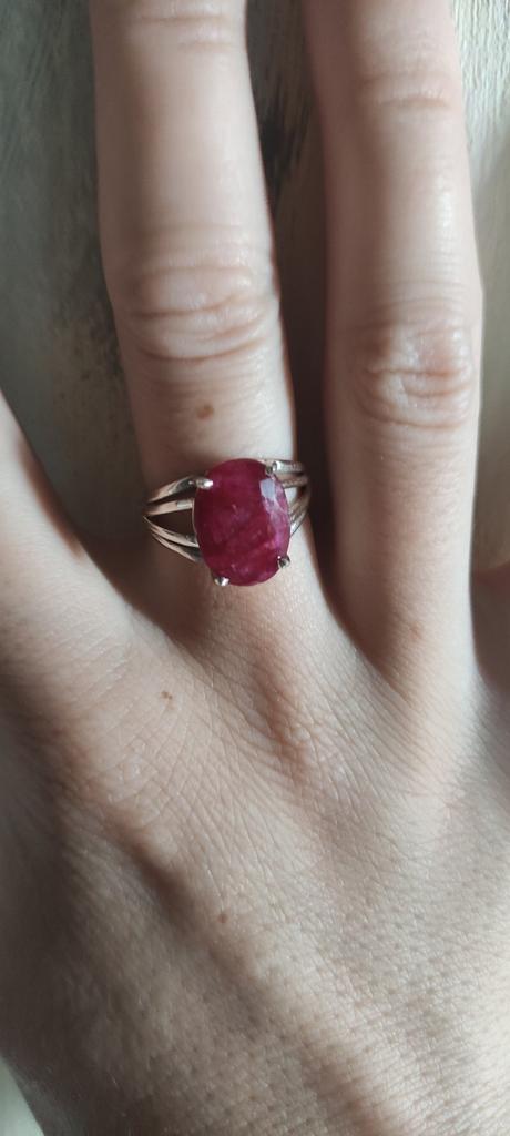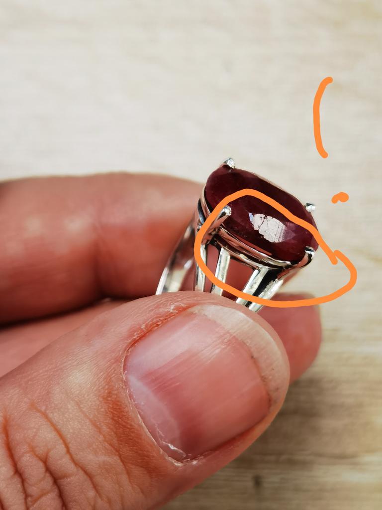 Very satisfied, the stone is large, with inclusions, dark ruby hue, thank you