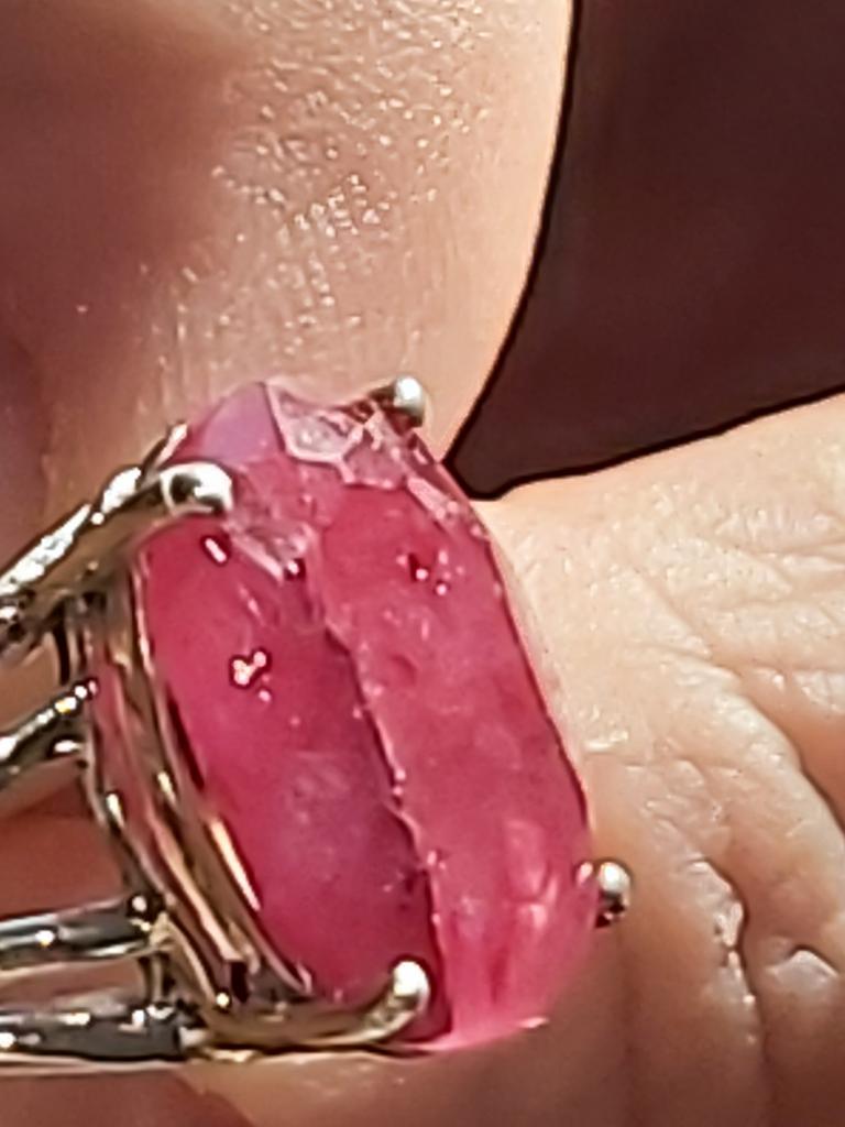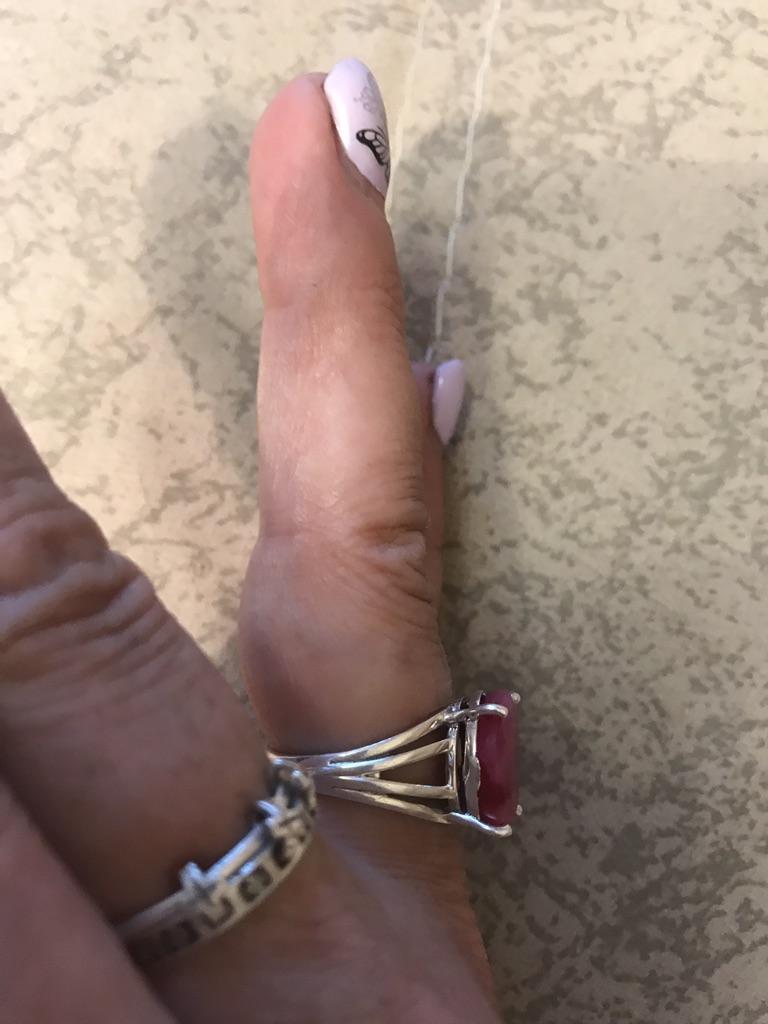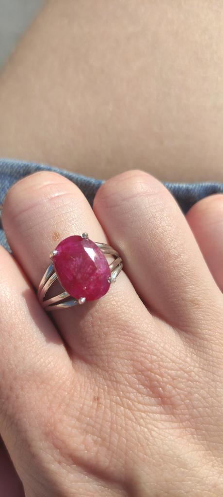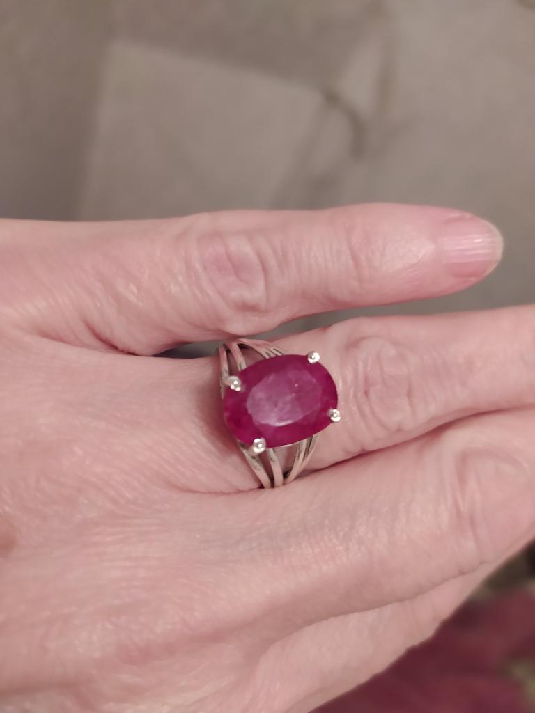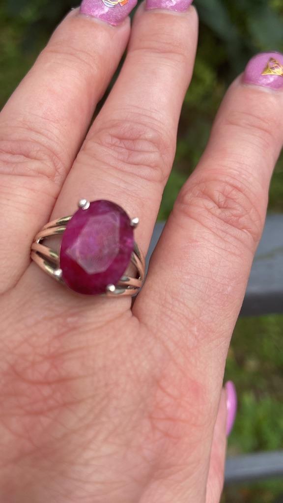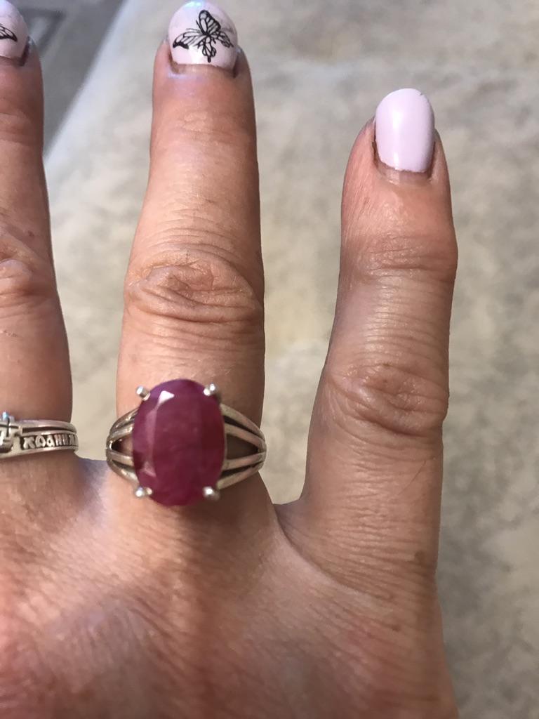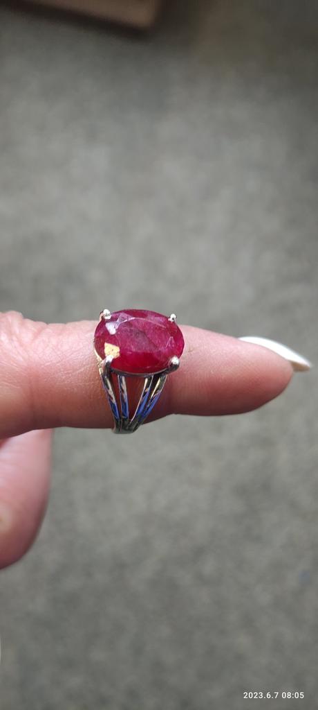 Very satisfied, the stone is large, with inclusions, dark ruby hue, thank you