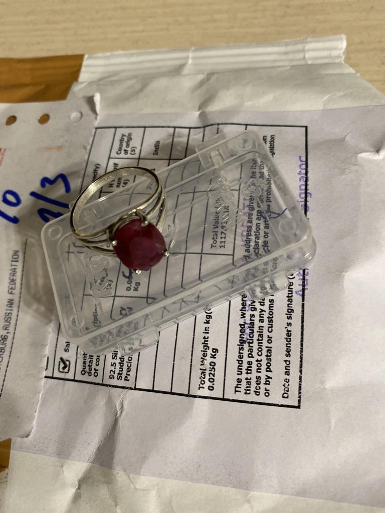 I had to pay 11 euros to receive my order by the postman ... that's why I put one star less to the seller who does not warn that there are additional costs ... moreover the ring is oxidized underneath (there is verdigris) is it a real ruby stone?