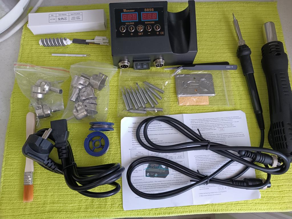 I received the product in record time. I checked it - everything works. The soldering iron solders, the hair dryer heats. The temperature is adjustable. True, I haven't studied all the settings yet, but overall it's very good. The station is good. Thank you.