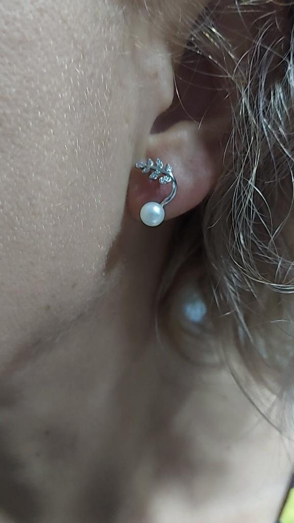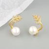 ANENJERY Paved Zircon Leaf Pearl Earrings For Women Creative Modified Earlobe Accessories