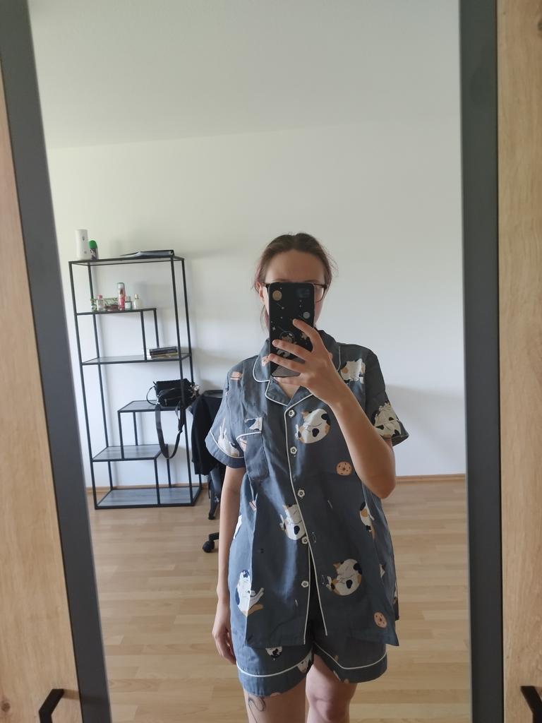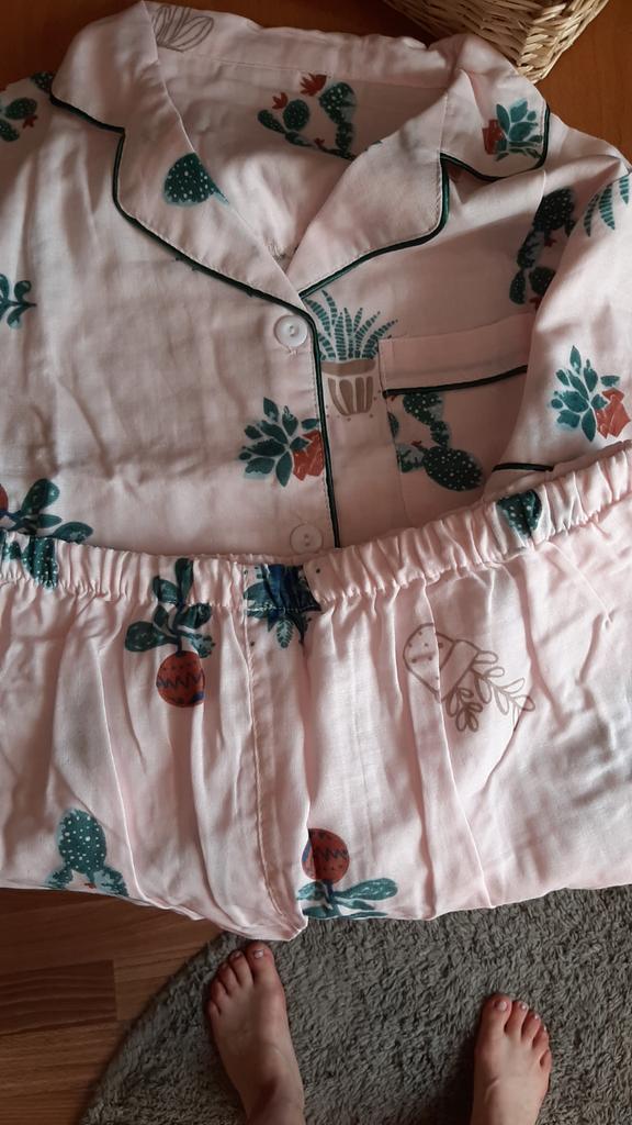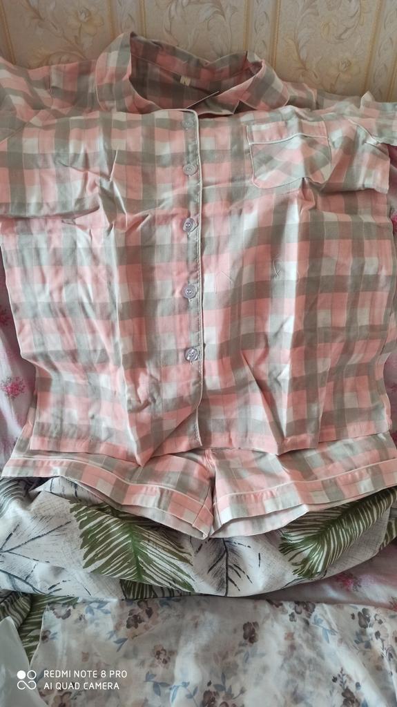 Very pleasant pajamas, the seams are well processed, the fabric feels like cotton.
