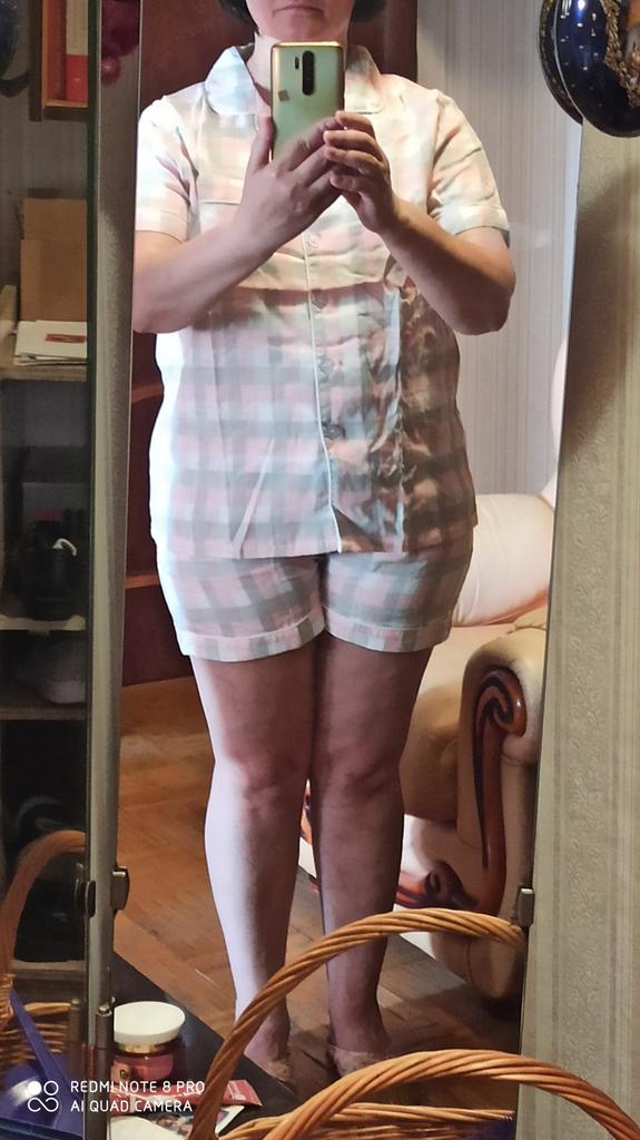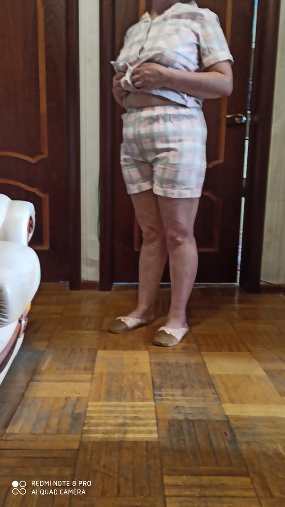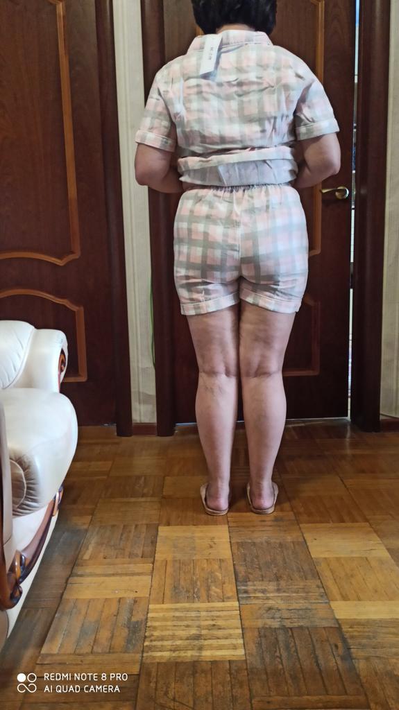 Very good quality, feels like 100% cotton. The color is rich. Size: the blouse size m fits my s perfectly, but the shorts are smaller, they look like xs-s, in general, I pulled them on my s)) but they fit quite tightly.