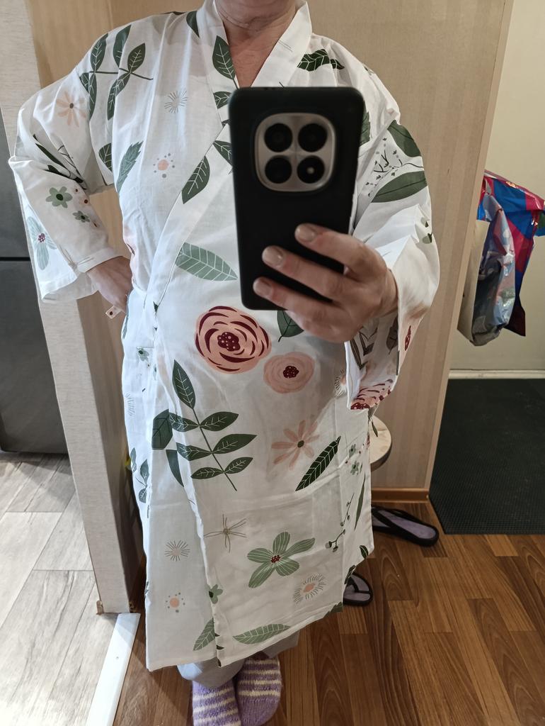 I took a bathrobe for the house and also muli-tapuli in color. The kimono robe is very cool. The fabric is similar to linen. The size of 92-69-98 could be smaller, but it was the smallest at the time of ordering. I will wear it with pleasure! Thanks to the seller!