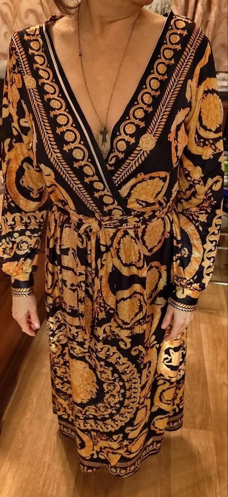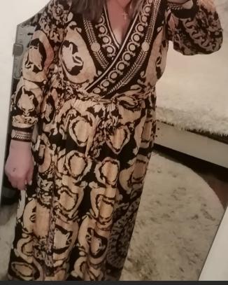 Rather a tunic for size 52, but if for 50 it can also be a dress, for the dress there are not enough ties inside to tie, but otherwise very beautiful, in the photo it looks like silk, but in reality it is knitwear, but it doesn't look cheap, there just isn't that kind of shine. Overall, top.