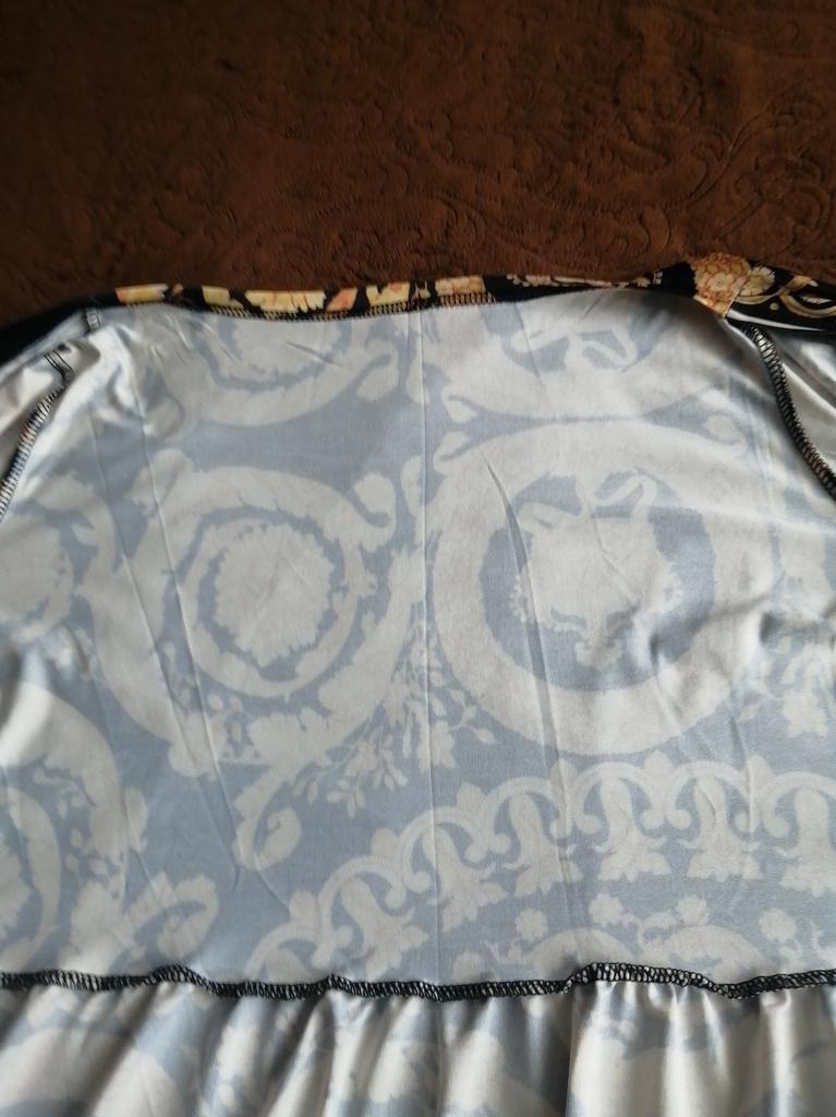 The quality leaves much to be desired, the fabric is cut off in the most visible place and the pattern is completely different, the cuffs also have a different pattern, it will work as a dressing gown at home, size 52-54, it won't fit a larger one.