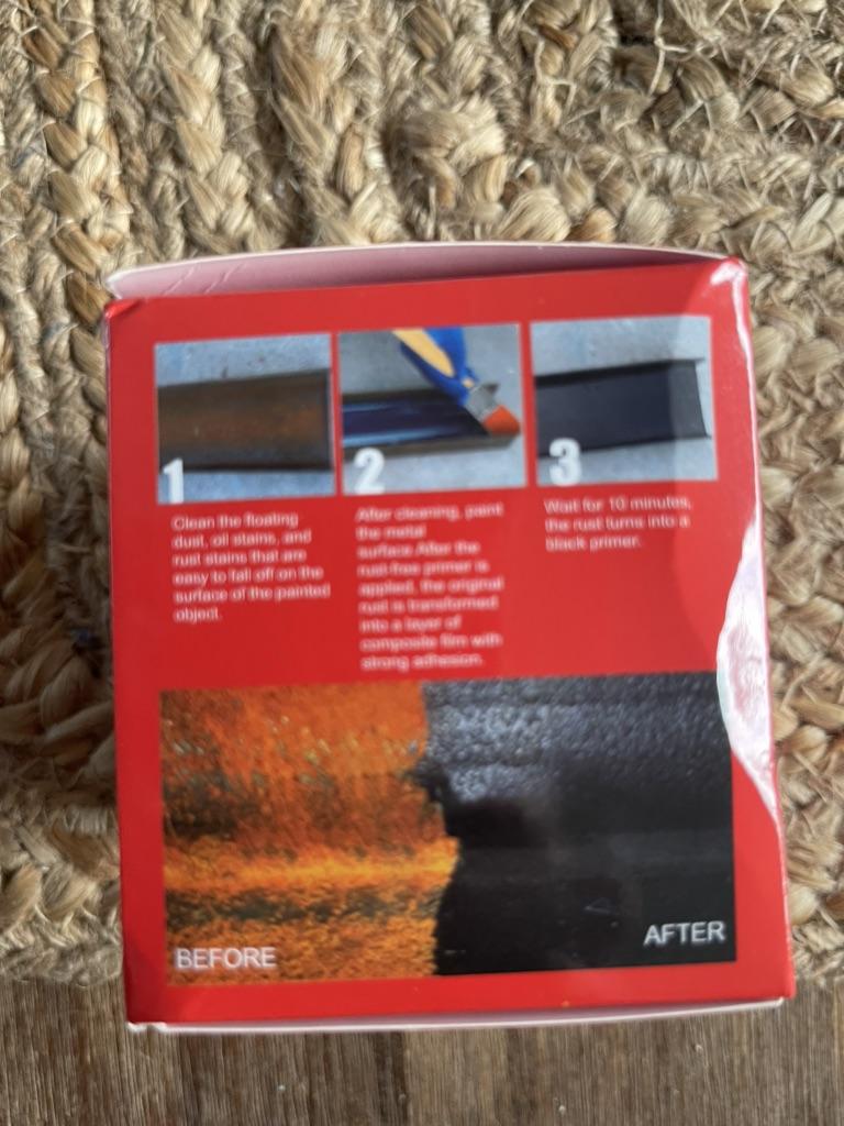 Good day everyone! This review is about a rust remover. It is a paint primer to remove rust from car or boat parts. I bought it for refurbishing my car. It meets my expectations, the rust remover is in a sealed jar with a brush. The item was packed normally. Pros: + good price + excellent quality + including brush Negatives: - shipping took 43 days The size corresponds to the size table. It is of good quality. I am very happy with the purchase, and recommend it to anyone who needs a rust remover.