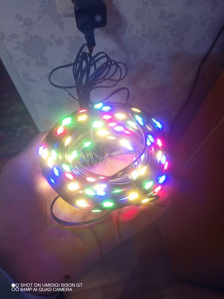 The lights are glowing, it works. And how much joy the garland will bring to the house, the New Year will show. Satisfied. Thank you