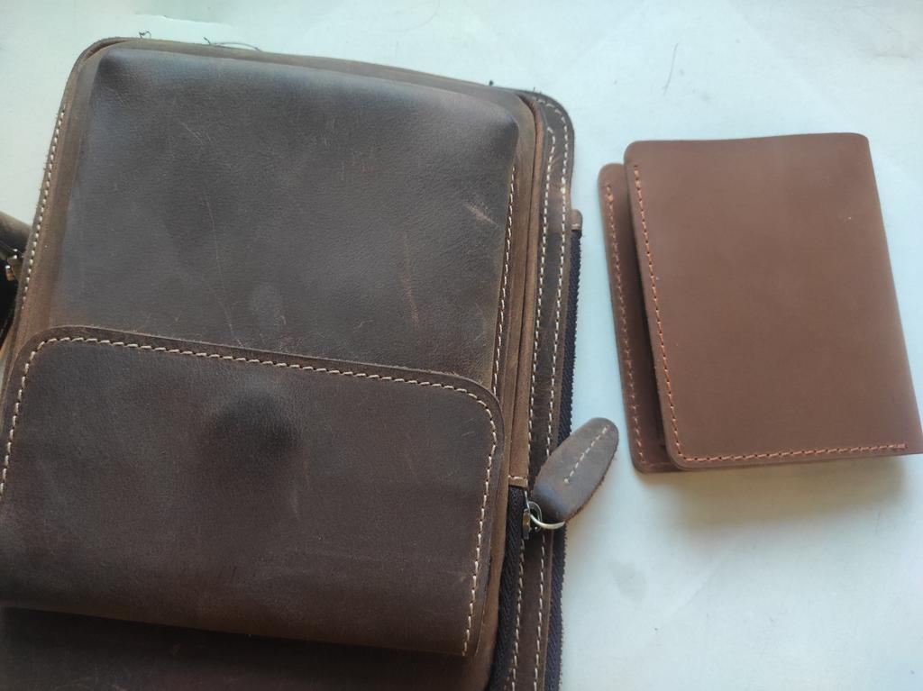 The product is made of genuine leather, the tailoring is good, but the color does not match at all. And I selected it for the bag as a set.