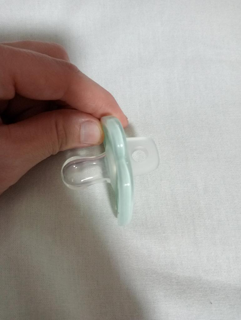 The little girl doesn't accept any pacifier, she prefers her finger, we try this one, she takes it a bit but we'll see along the way, I like it, it's all silicone and soft, it has no smell, but it's a bit hard to hold in her mouth, the teat is small. I also ordered something for the finger.
