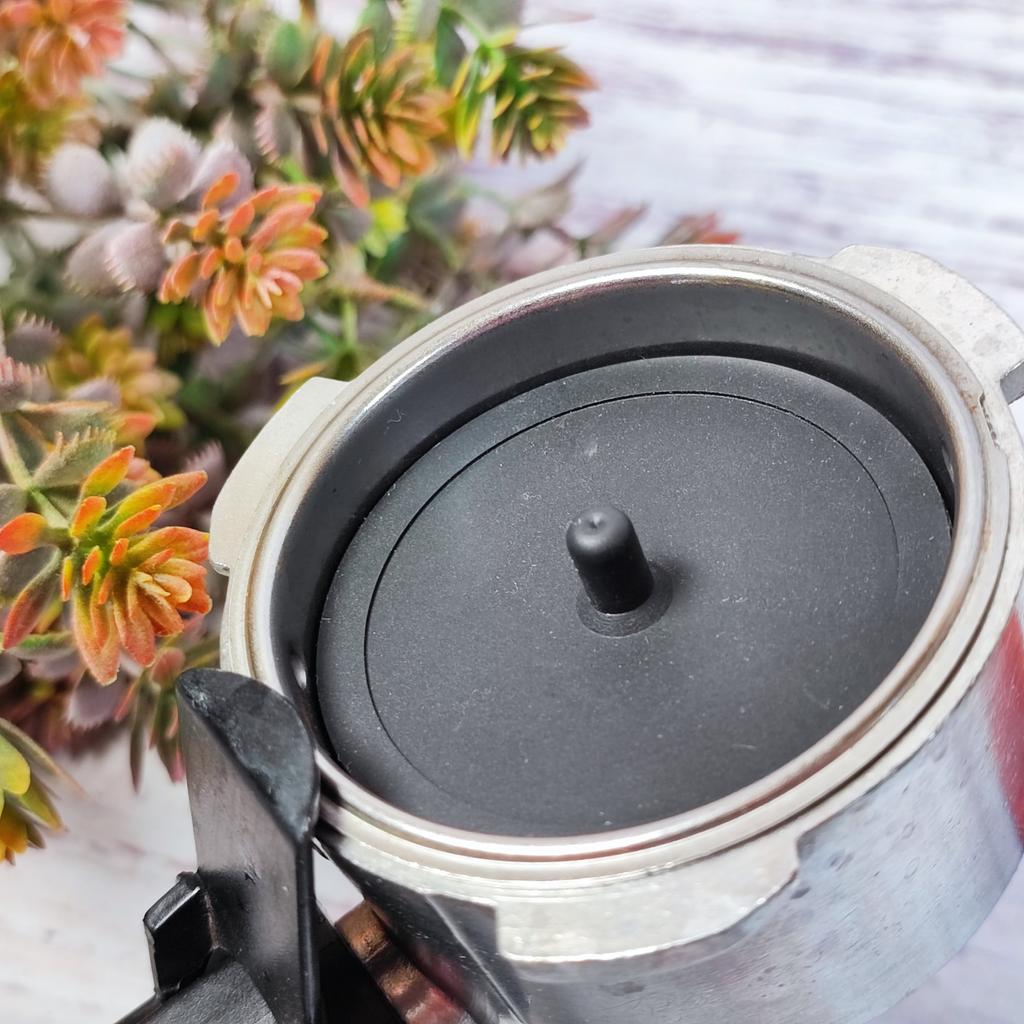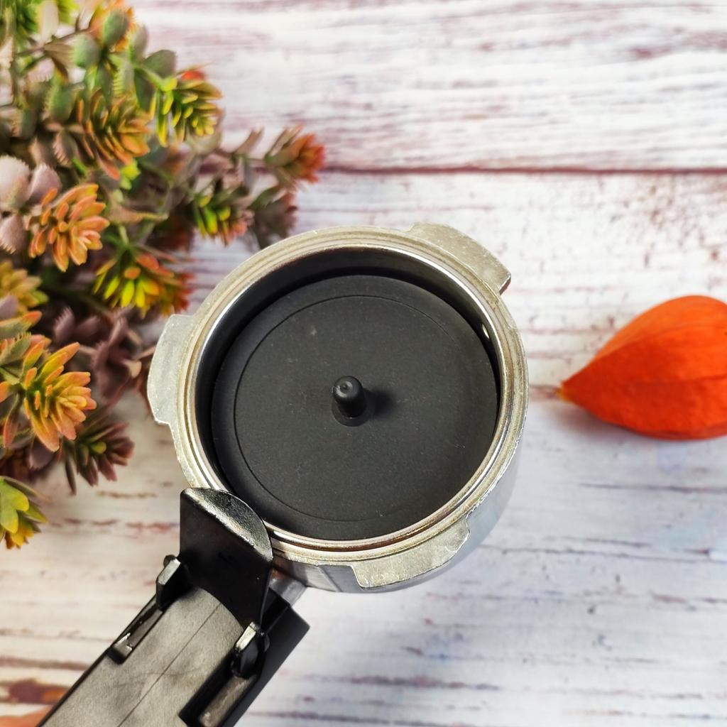 Rubber universal plug for the holder (blind filter) universal. Plug for cleaning the coffee machine. Everyone knows that coffee machines should be cleaned, and for this, the so-called "blind holder" is needed. Another name is "blind filter". The blind filter is used for backwashing on espresso machines with a pressure relief mechanism. The espresso machine's brew group must be cleaned every day. This is a standard and necessary part of cleaning the machine of coffee residues that accumulate inside the group head. Keeping channels clean in the group ensures even extraction pressure. To backwash, remove the regular (single or double) filter from the portafilter handle and replace it with a blind machine filter. It is recommended to do 5 cycles of 5 seconds for a proper backwash to be performed at the end of each day. Blind filter can be used together with cleaning tablets.