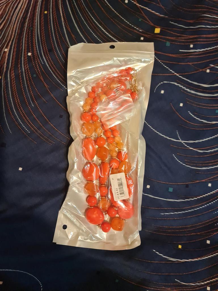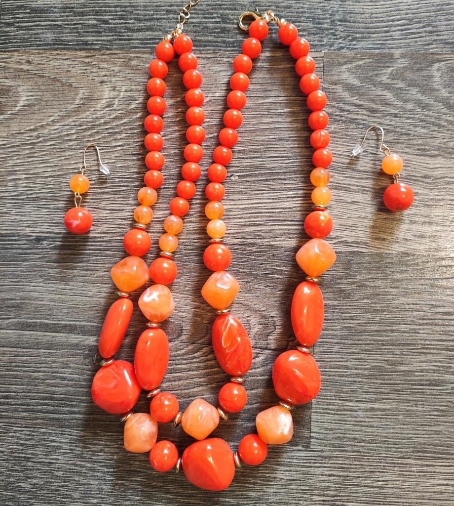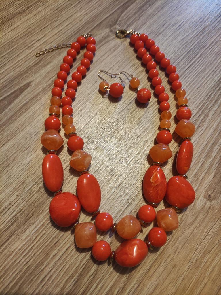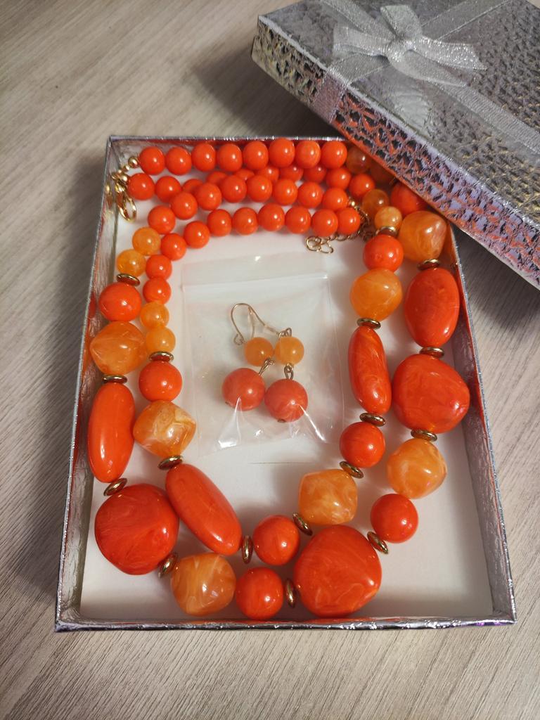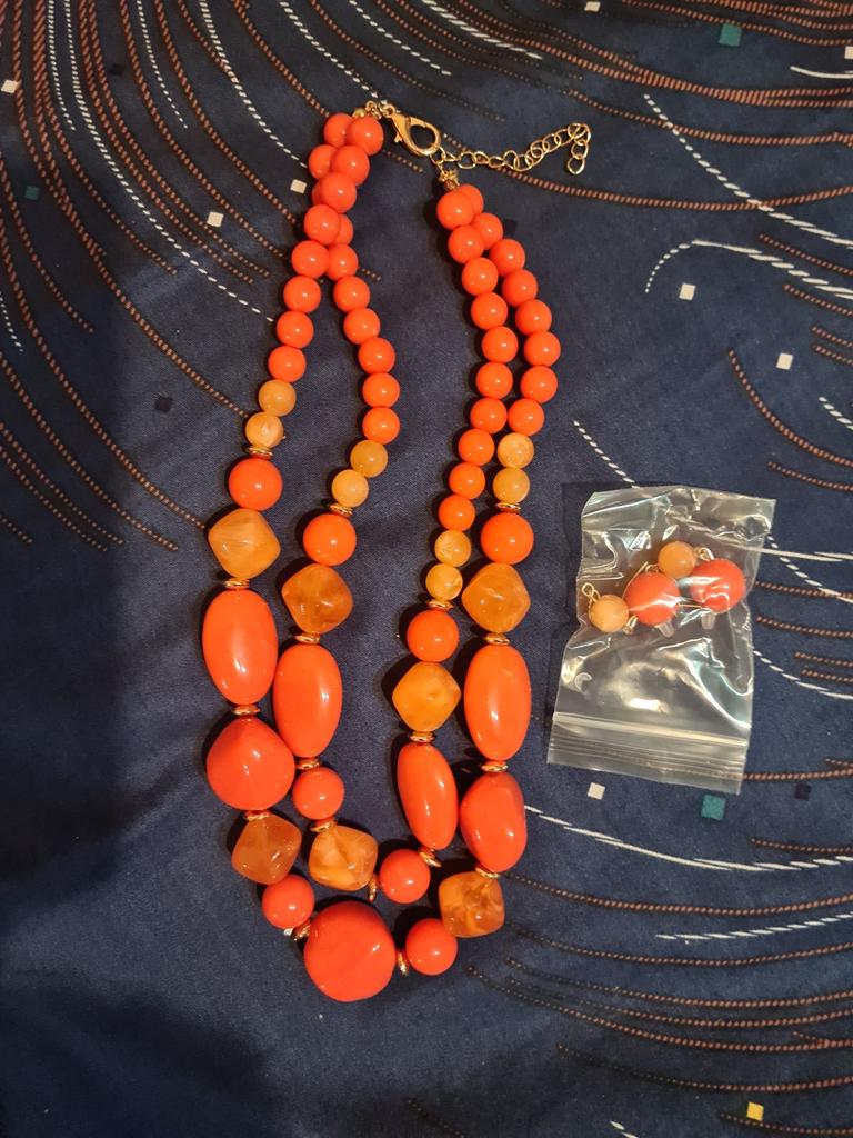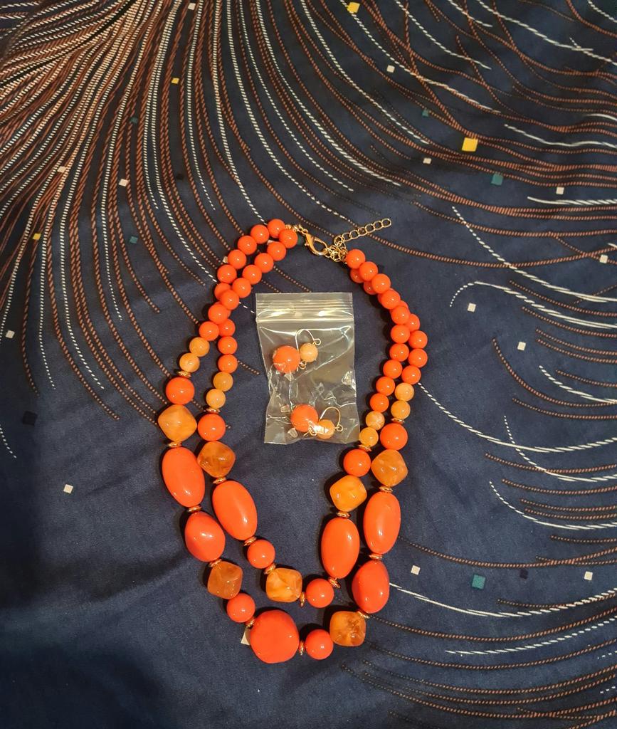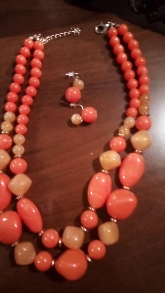 The necklace is beautiful. High quality! I ordered two of these sets last year, orange and blue, now purple 💜. Pretty lovely! Recommend 👍