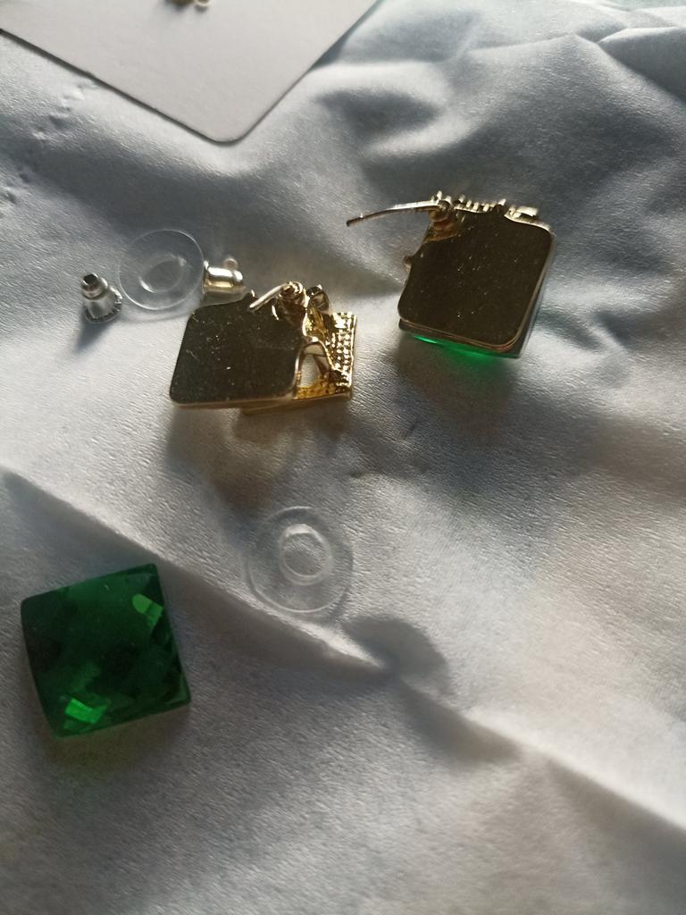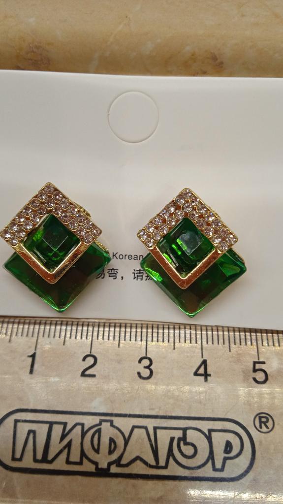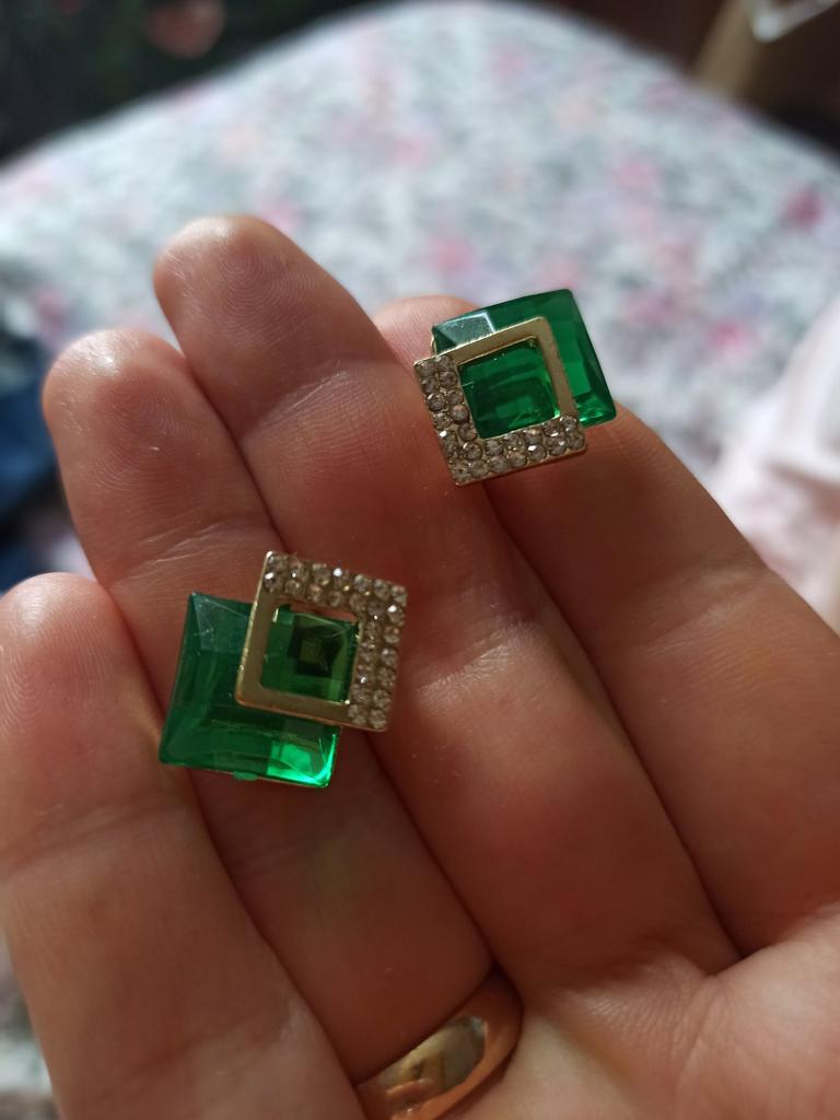 The color is rich emerald, the stones shine well in the light, it looks like cheap costume jewelry, but the price is appropriate. The upper part with rhinestones is a little crooked, and I really wanted a surprise for three kopecks, so that it would look like thousands!