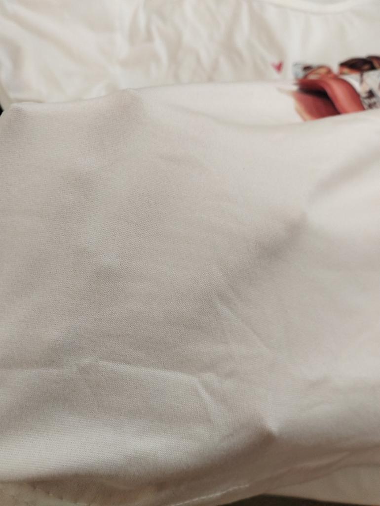 The T-shirt is not white, but milky. But the most unpleasant thing is the quality of the material and the tailoring. The synthetics are thin, probably the cheapest and sewn in any way. But what else can you expect for such money ))