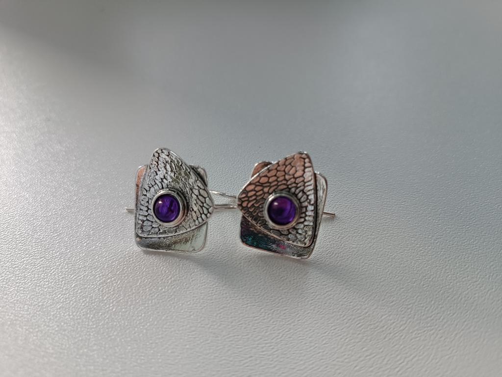 Retro Bohemian Purple Triangle Square Irregular Earrings For Women Boho Ethnic Amethyst Drop Earrings