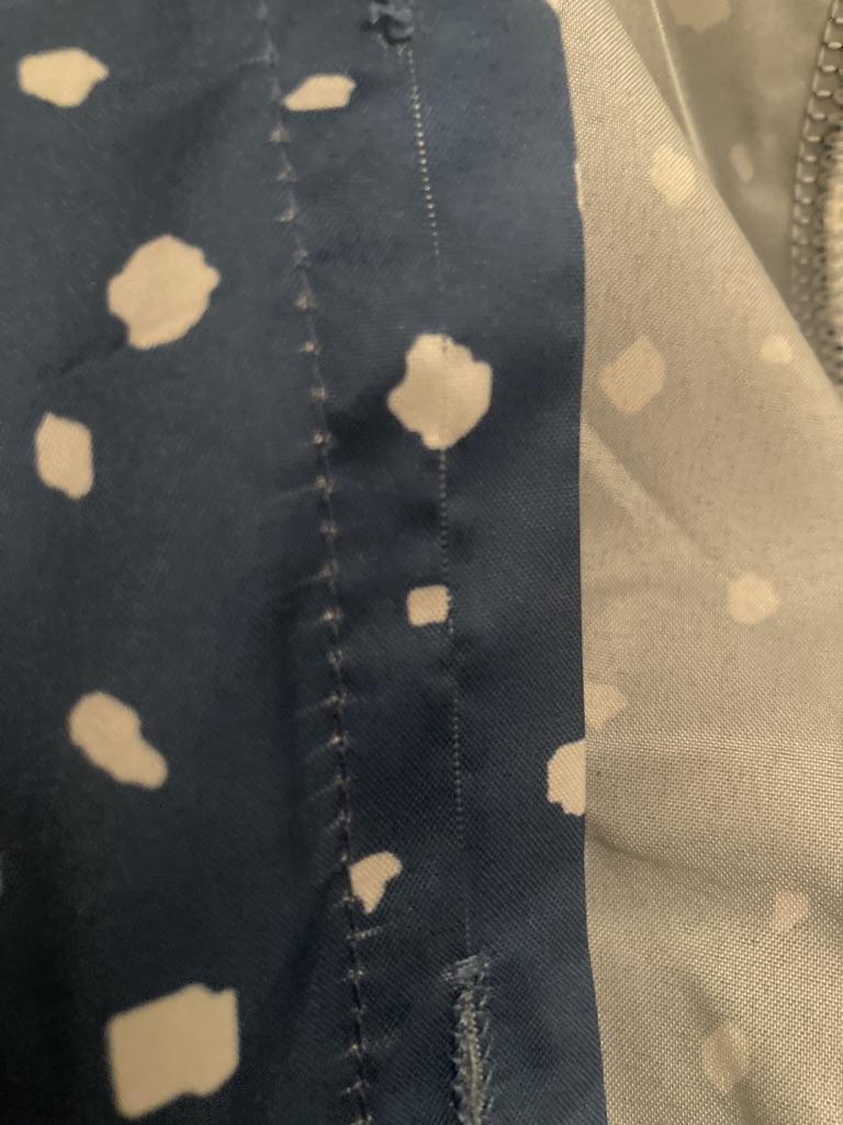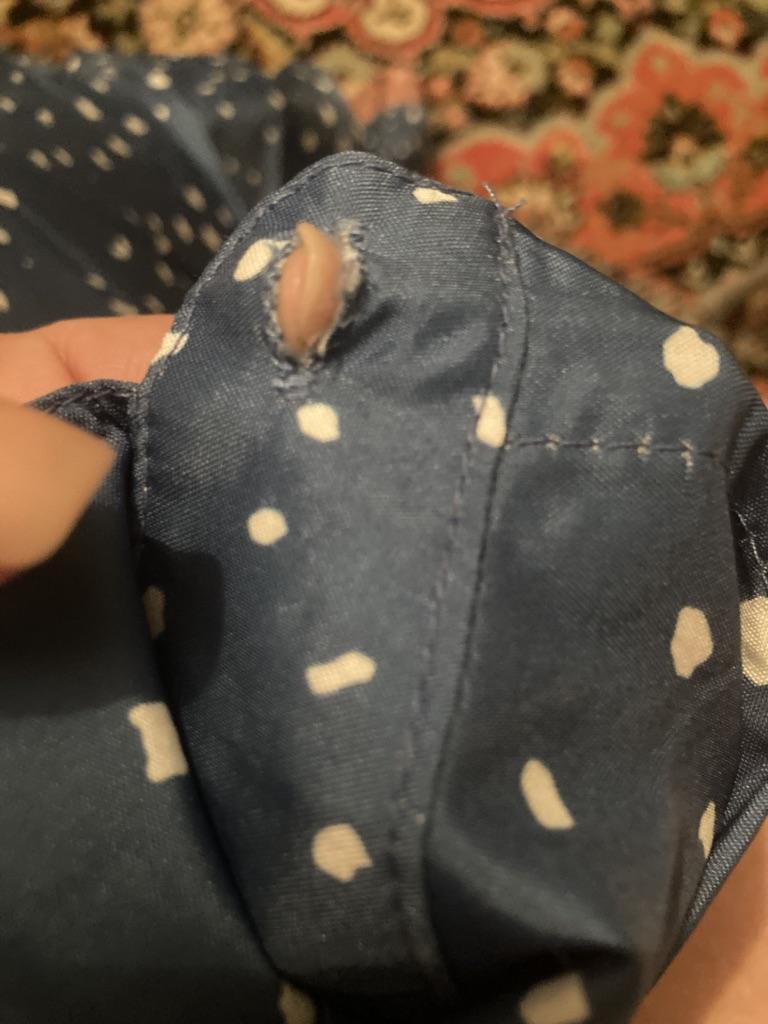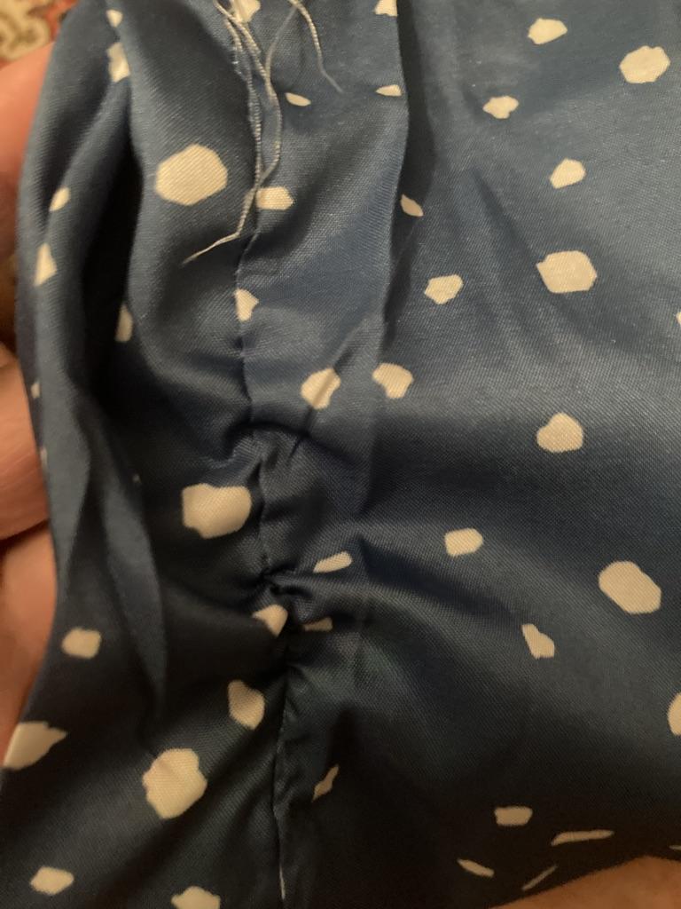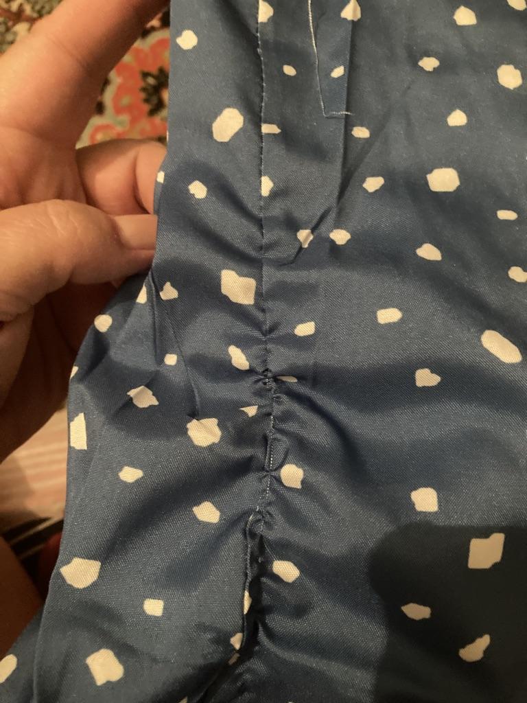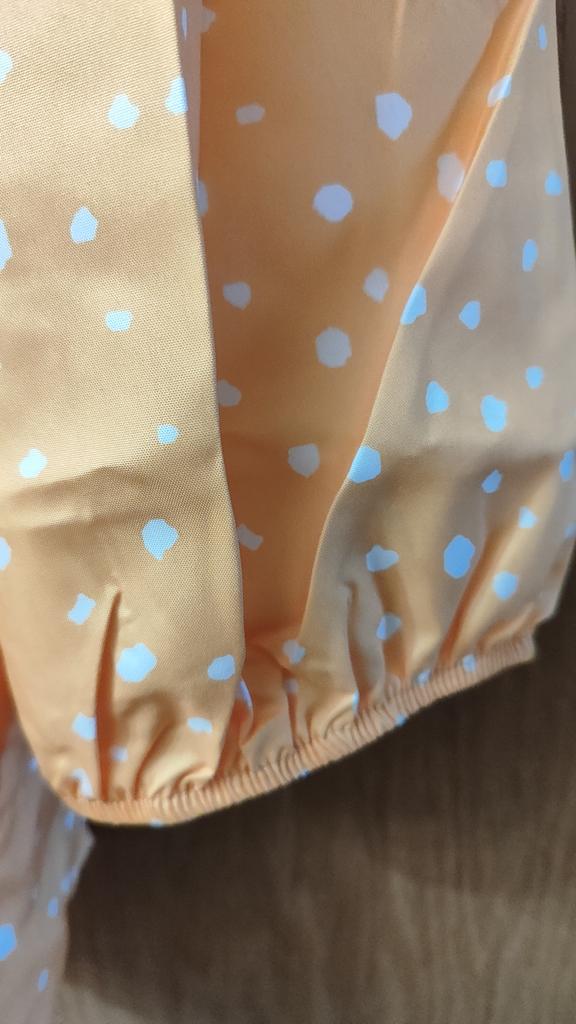 The blouse is well sewn, but there are no labels. The sleeve length is strange, to put it mildly.