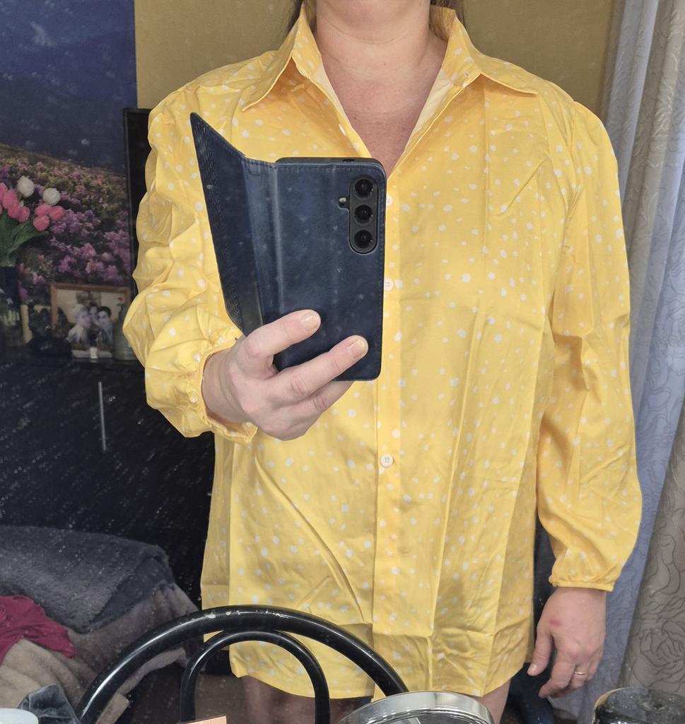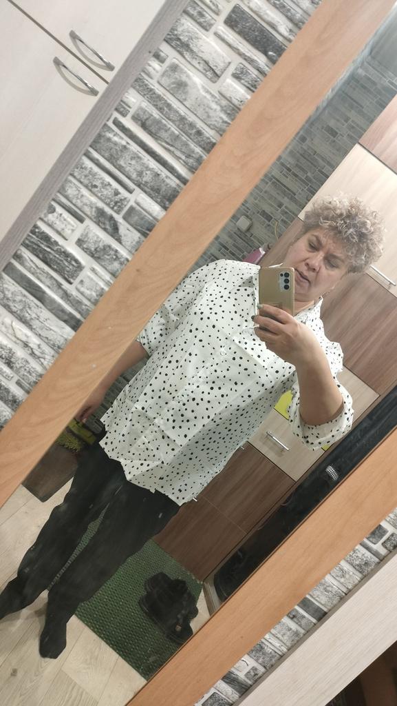 The blouse is very delicate, I just fell in love with it, the color is rich, the sleeves of this model are very interesting, it fits size 46 perfectly