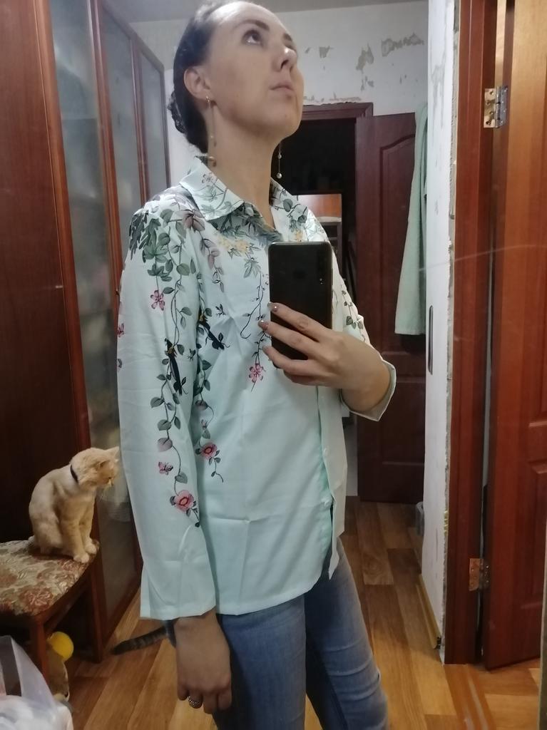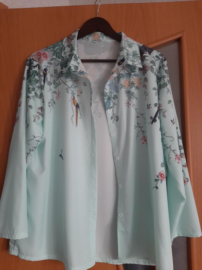 A gorgeous blouse, the fabric is light, I really liked it, only a pity, it should have been a size bigger, short sleeves. Oriented on the dimensional grid, got lost. At OG 88 and height 164, I took S.