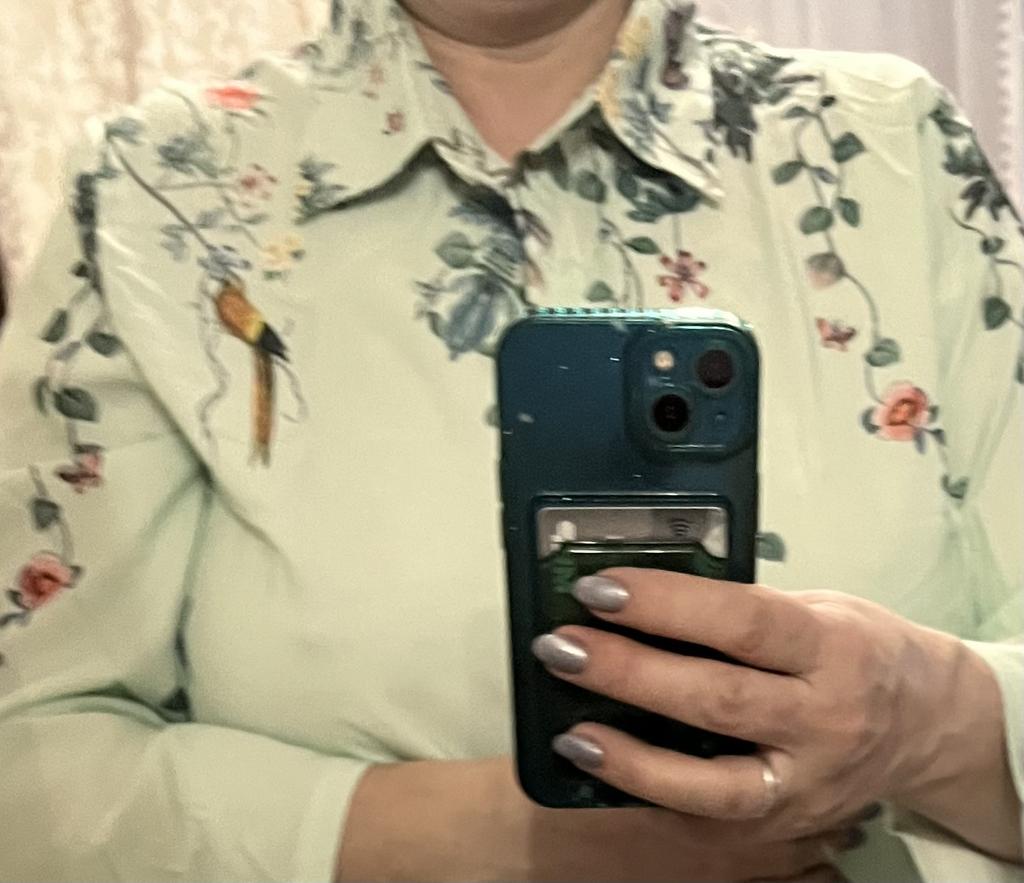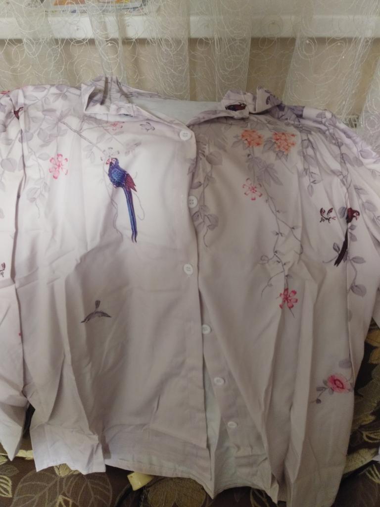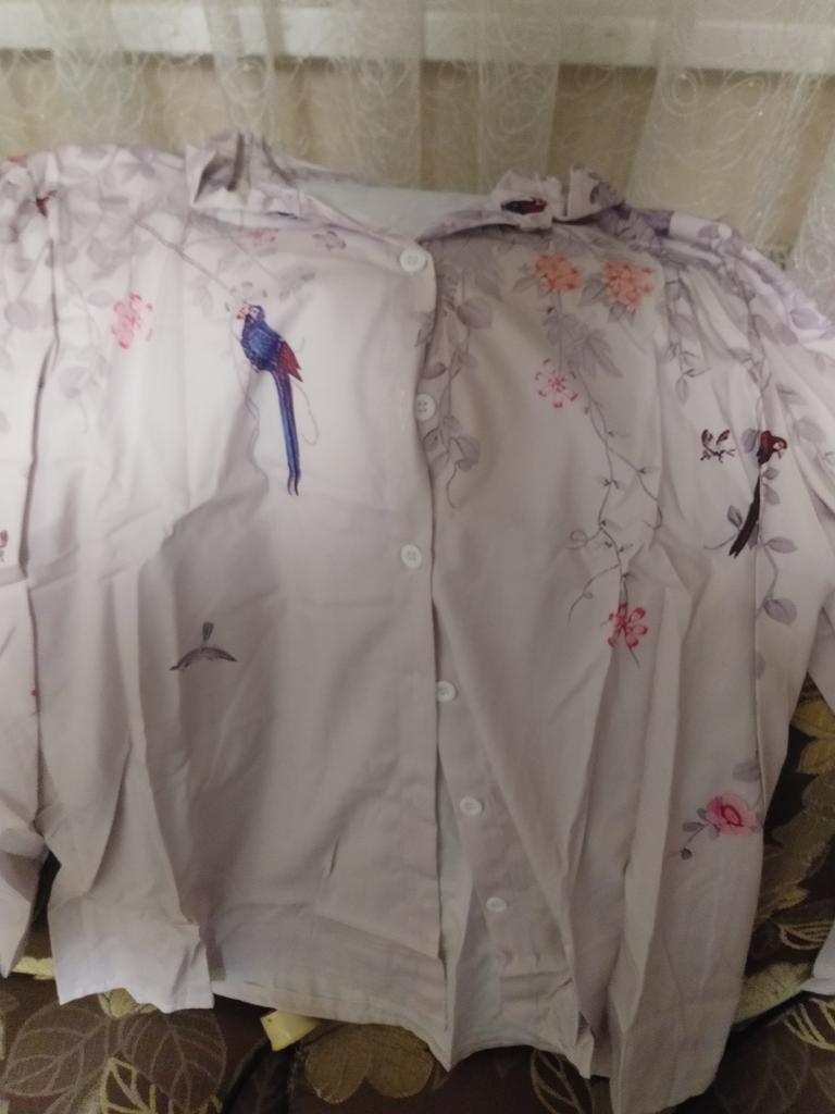 Everything is fine, if not for the reverse side of the fabric (it is light) - in the photo of the model you can see that the faces are in tone. This is the second shirt in a different color. The fabric is cool, silky, the pattern is a little blurry, but it looks good. Thanks everyone.