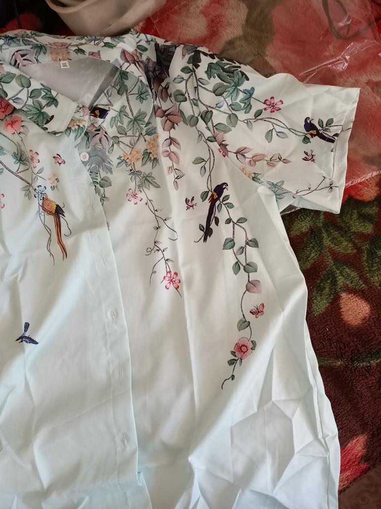 The chest volume is indicated as 128, I have 125, but my chest is not enough. And itβs a nice fabric, a beautiful pattern, not bright.