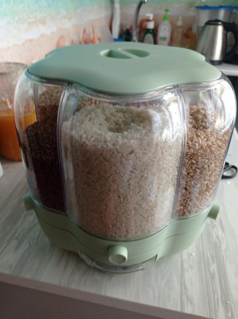 Rotatable Grain Storage Box Compartmentalized Rice Bucket Household Sealed Insect-proof Moisture-proof Separated Rice Storage Box Rice Tank