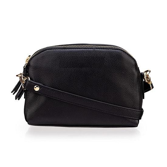 Noora Black Leather Mini Crossbody Sling Bag for Girls and Women & Double Zip Closure with Adjustable Straps