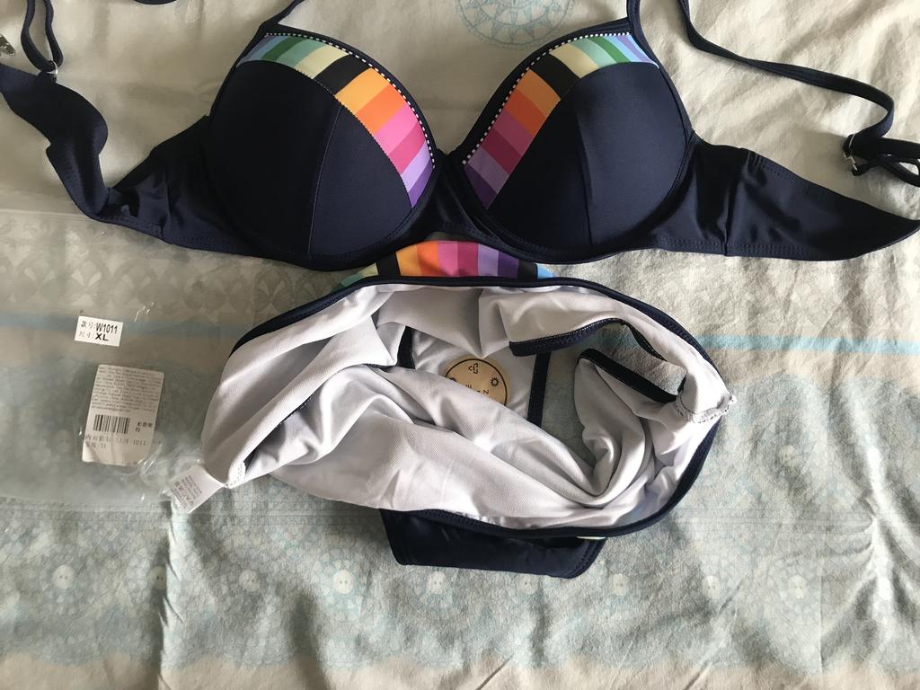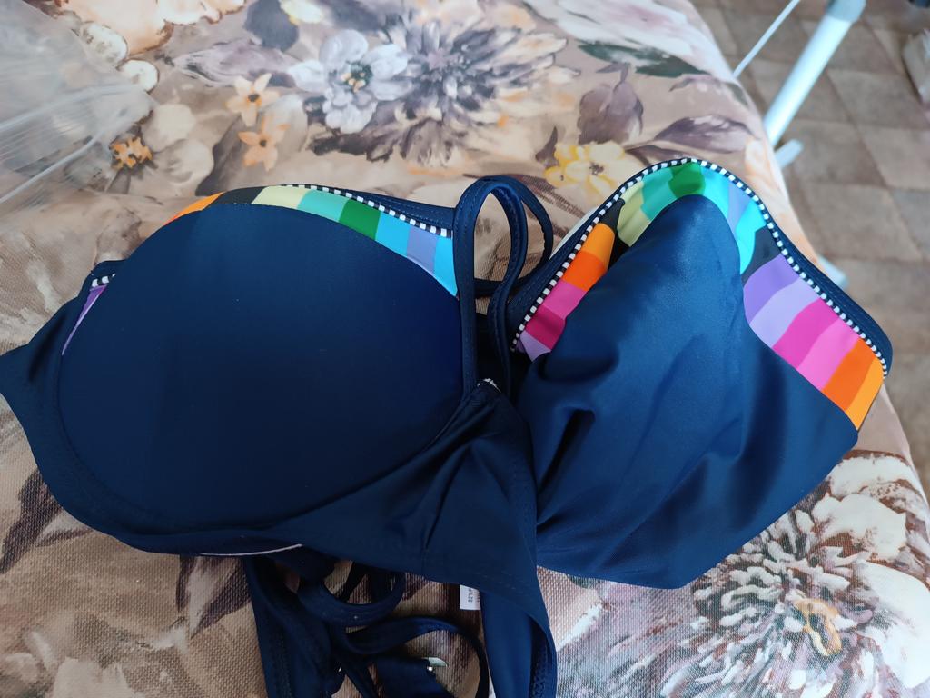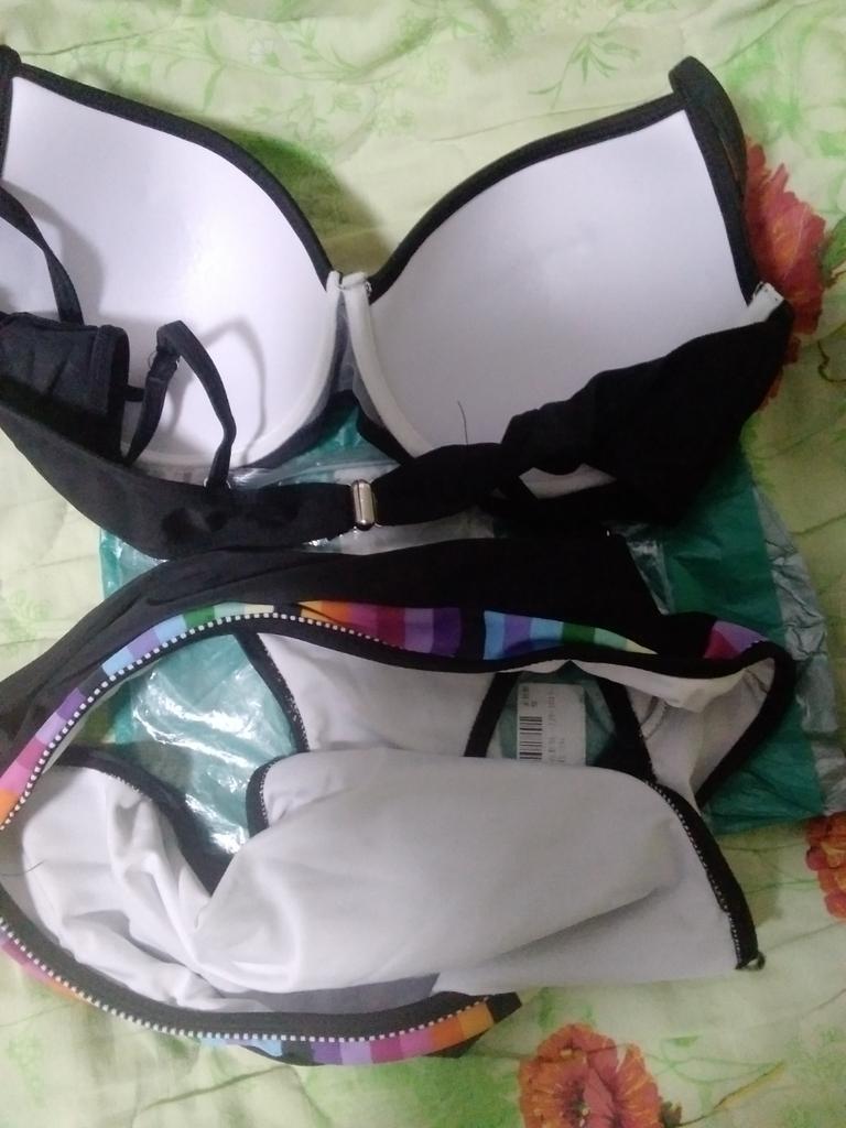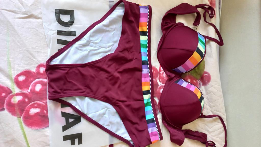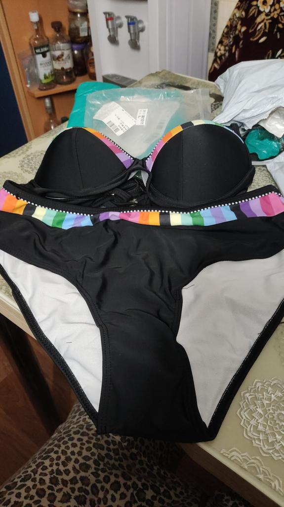 I'm delighted with the swimsuit. First of all, the size was right. At 48 I took XL. Both the bra and swimming trunks fit. Looks beautiful on the body, the fabric is thick. The swimming trunks are neither low nor high, just what you need. We can only hope that the salt water will not fade the colors.