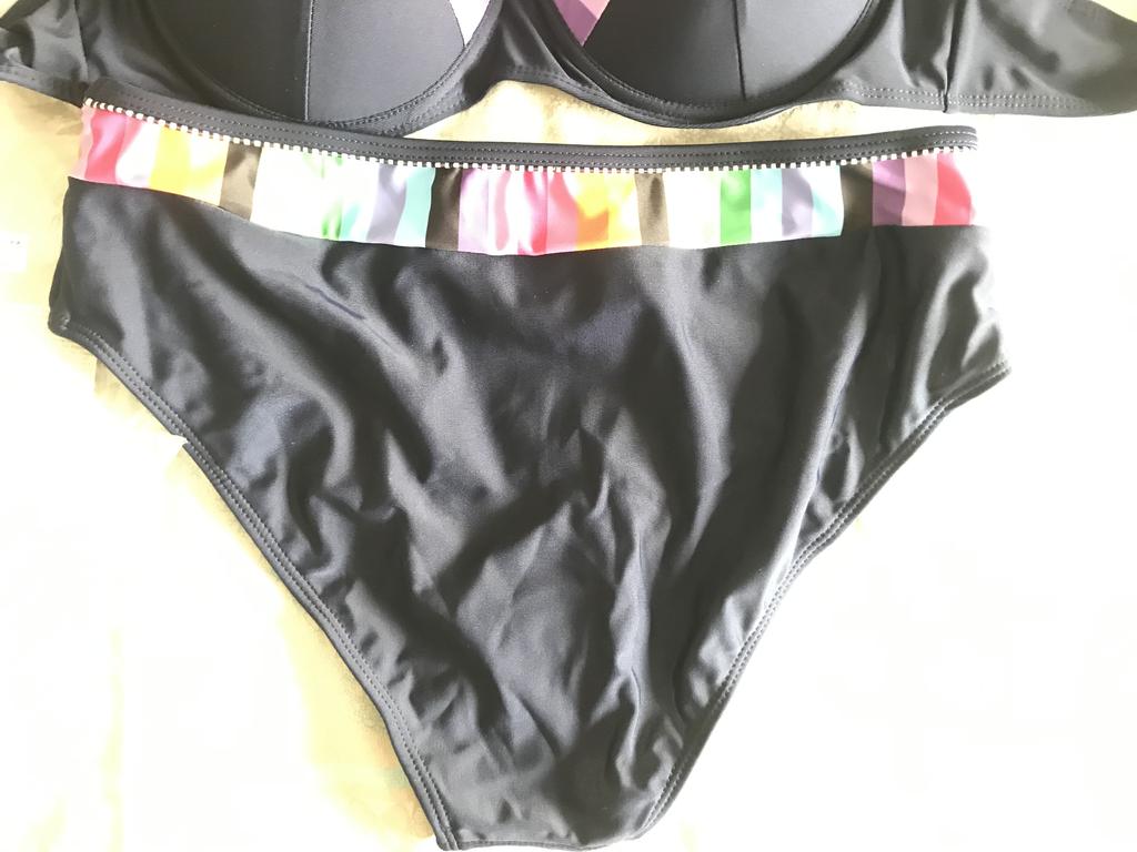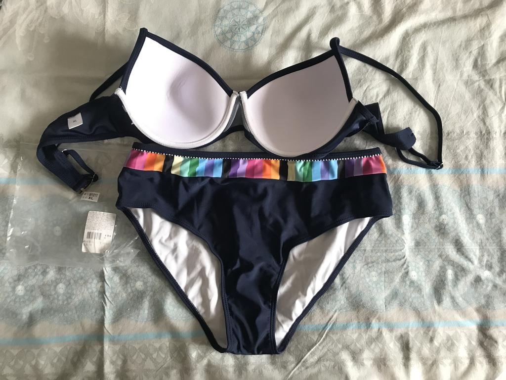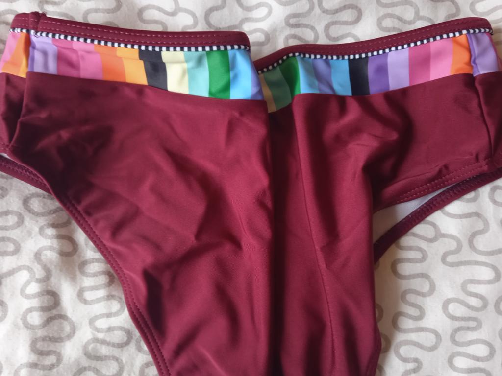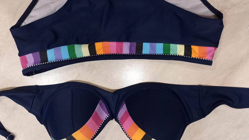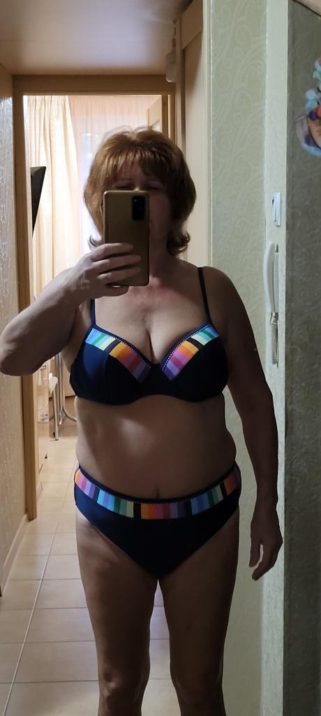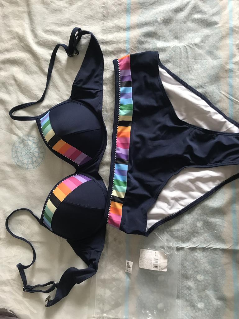 I'm delighted with the swimsuit. First of all, the size was right. At 48 I took XL. Both the bra and swimming trunks fit. Looks beautiful on the body, the fabric is thick. The swimming trunks are neither low nor high, just what you need. We can only hope that the salt water will not fade the colors.