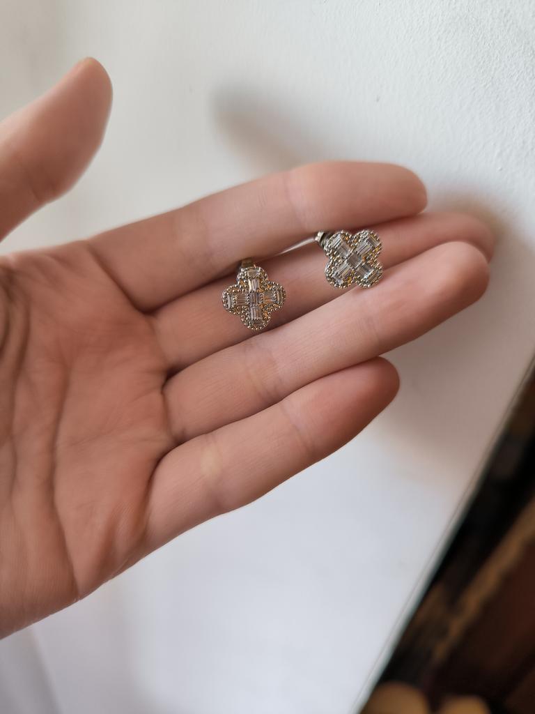 Korean Fashion Trendy Square Stone Four-leaf Clover Earrings Delicate Wedding Bridal Jewelry Valentine's Day Gift
