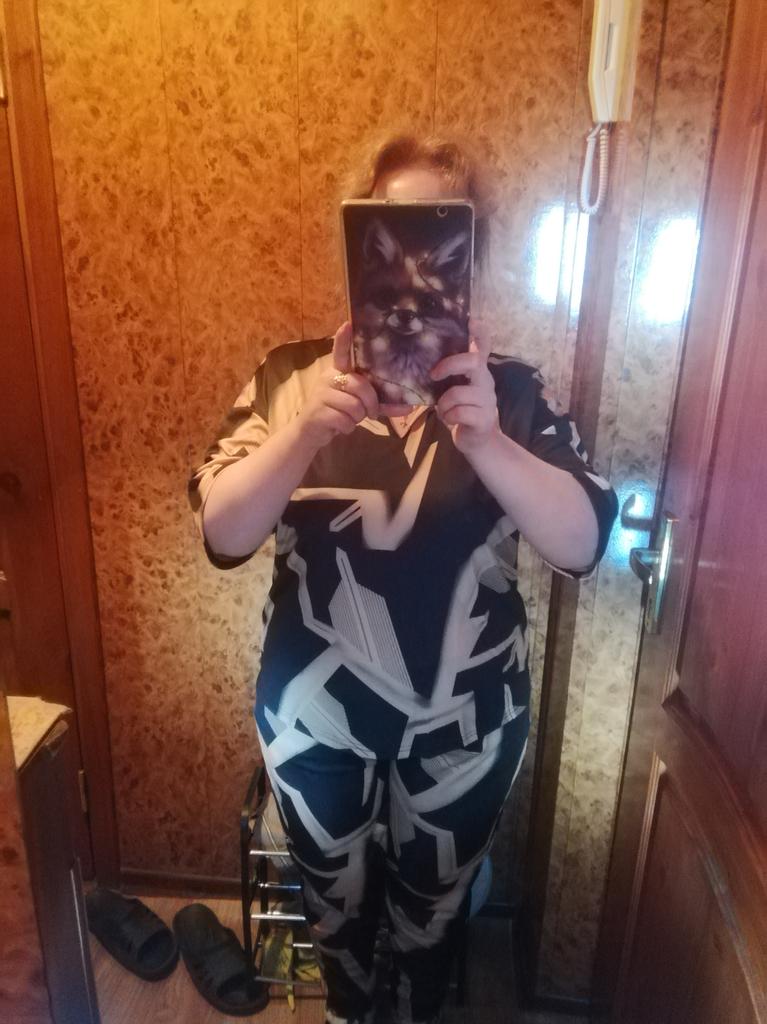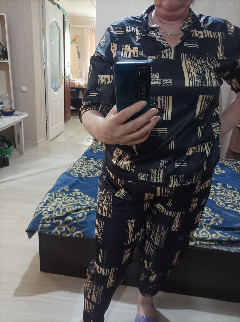 The suit is cheerful, summery, the model is also nice, the material is thick, I took size 54 xxxl, everything fits