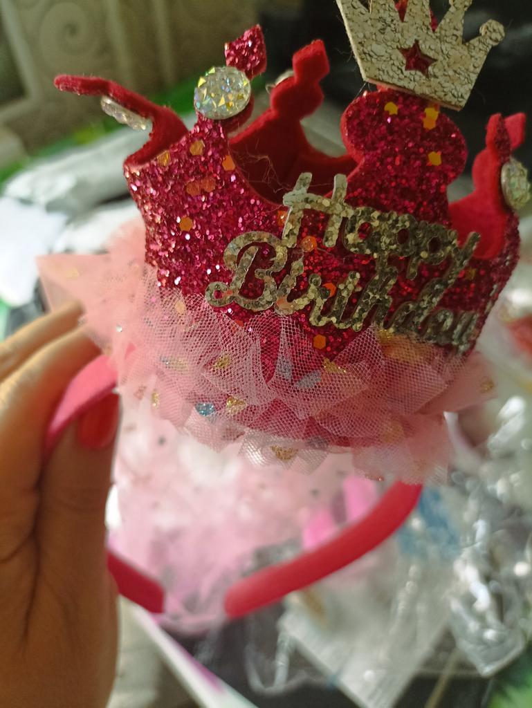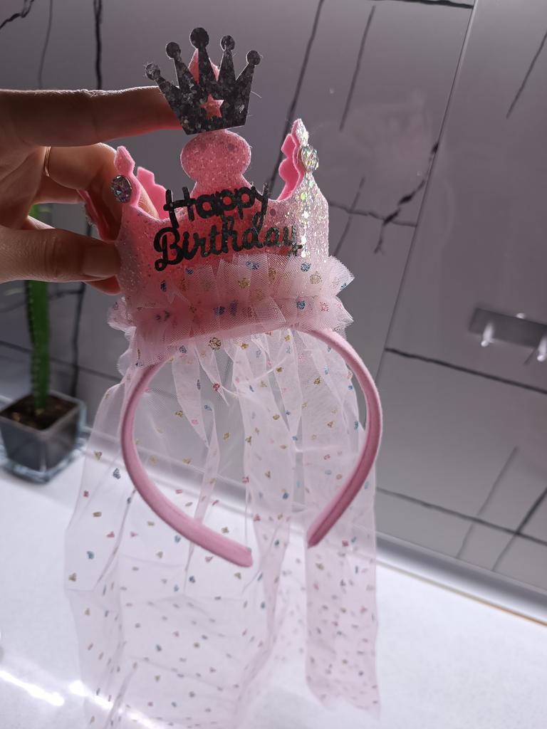 1 Pc Crown Cone Gauze Headband Princess Style Birthday Party Headwear Sequin Happy Birthday Hair Accessories Baby Girls Gift