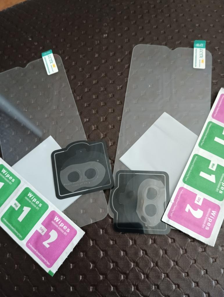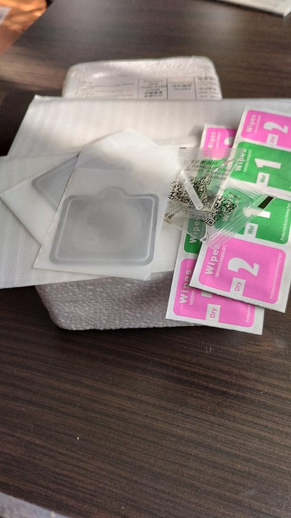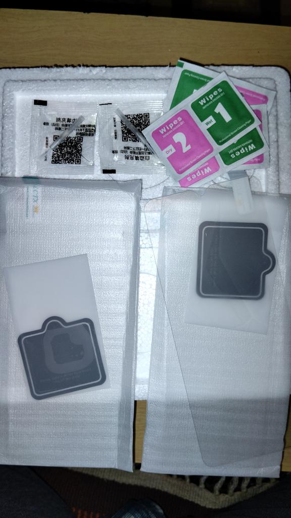 Everything arrived as indicated, 2 glasses for the screen and 2 for the camera. When gluing, there was no air, so the glass is exactly flat and without damage. It didn't take long, up to a month. One, but for that, I took off a star. That's why I thought that the camera would also come with glass, but some kind of denser film came