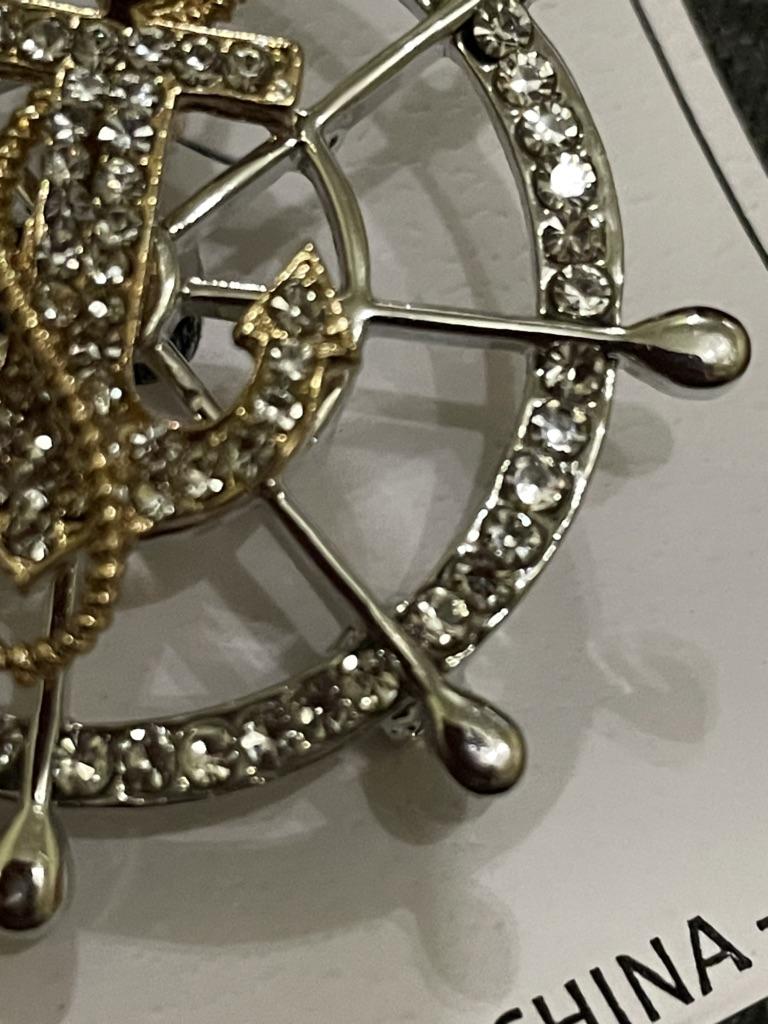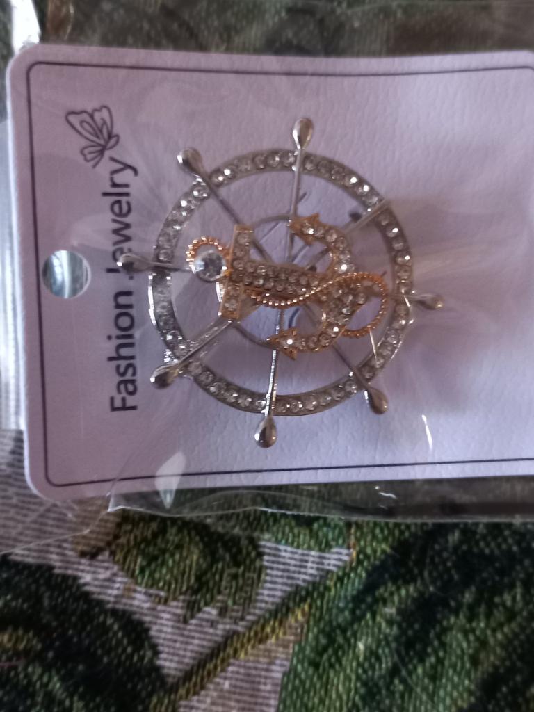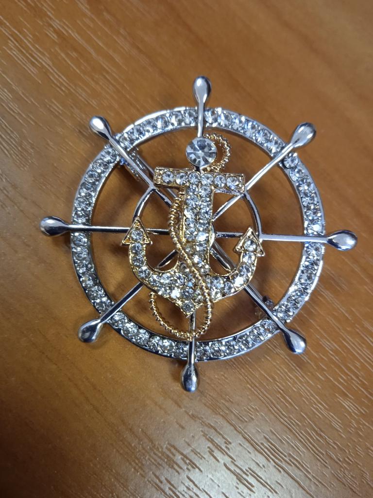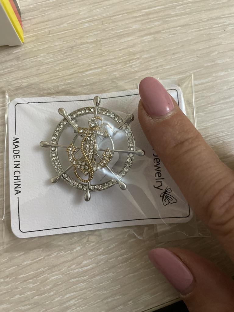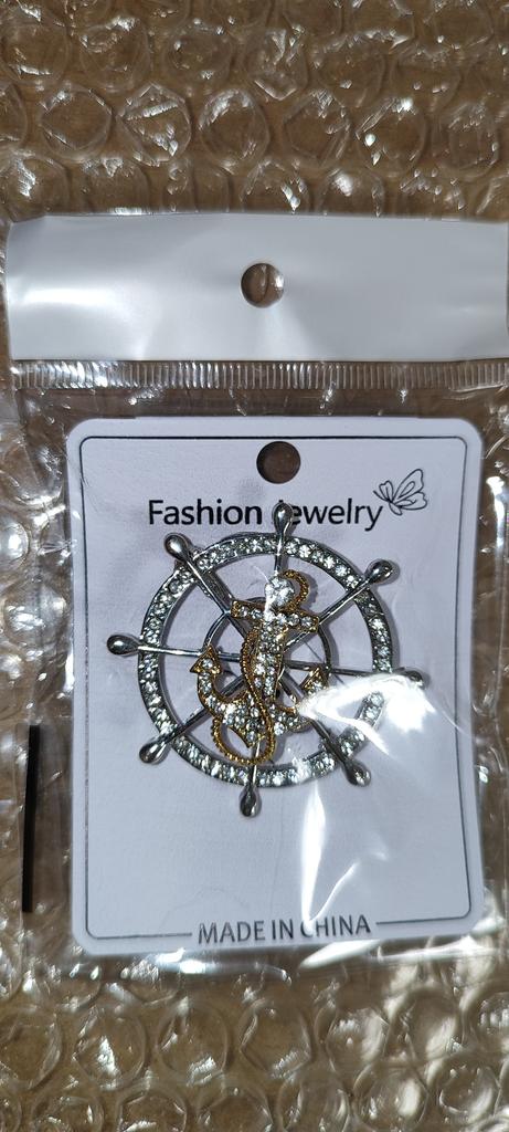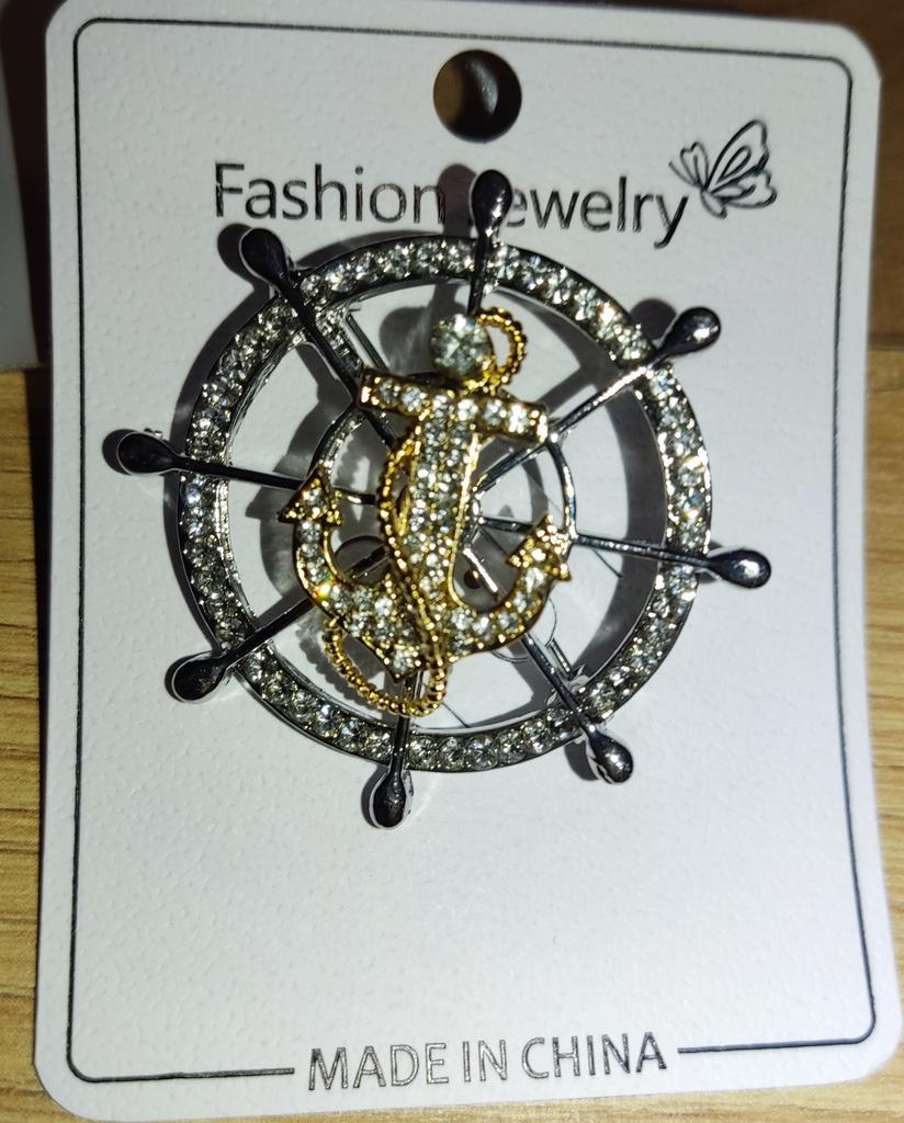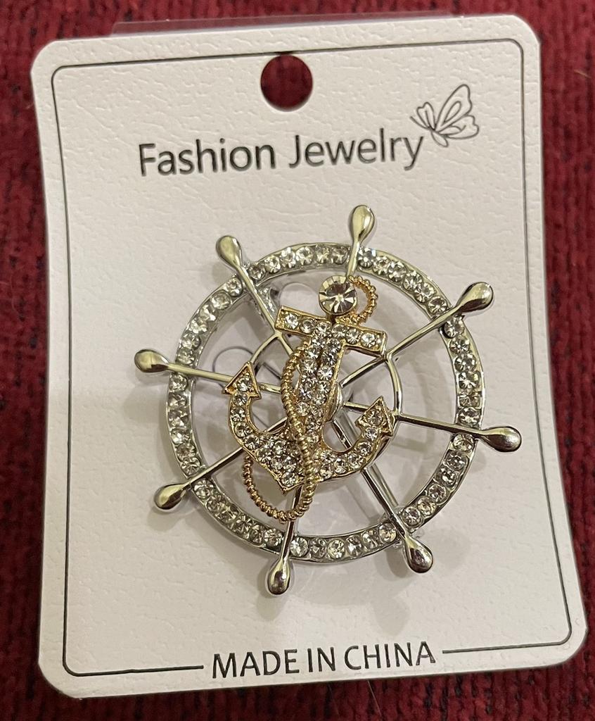 Jewellery review ✨️ broach from BLUCOME This beautiful broach/clothing pin has many uses. Can be worn on a jacket label, a shirt, jumper or scarf, even a hat. It's made with zinc alloy and its very sturdy 😃 The design is an anchor and rudder. With its beautiful diamontes/crystals which shine and glisten with the light it will surely add a touch of glam to any outfit ✨️ The anchor is gold in colour whilst the rest of the broach is silver. The back has a pin which simply slides under the clasp to keep it securely in place on any outfit The weight is 12g and the size is 4.2cm x 4.2cm Thankyou joom and joom seller ❤️