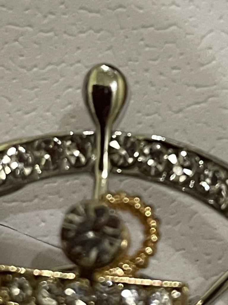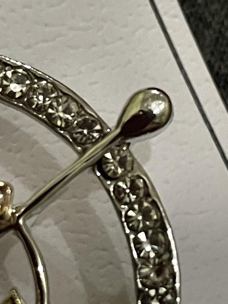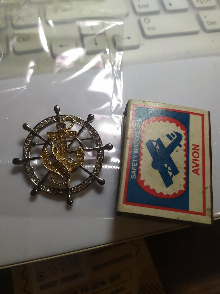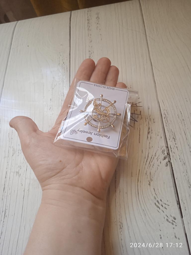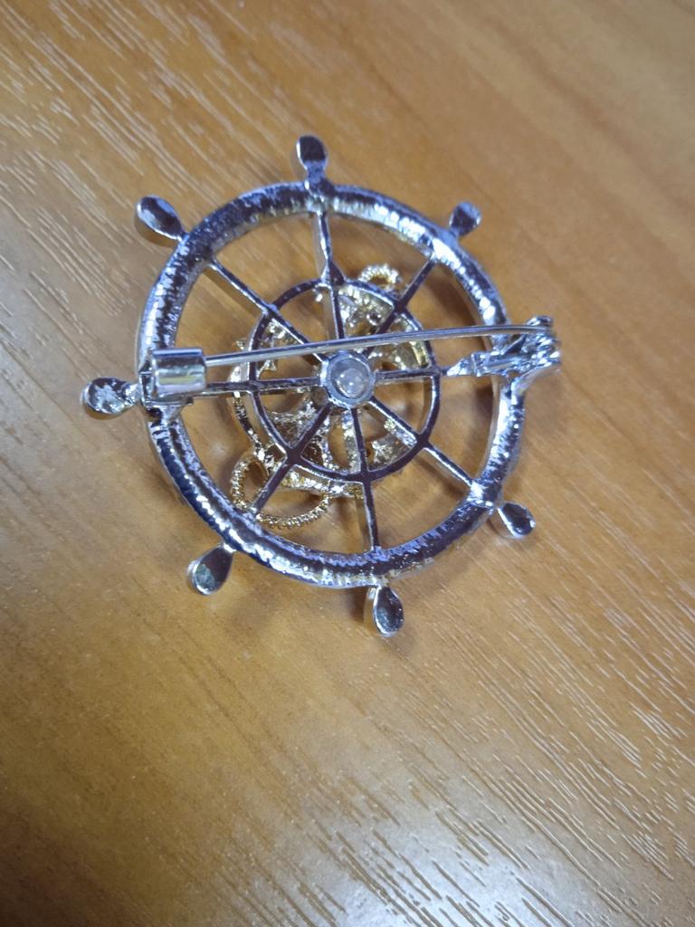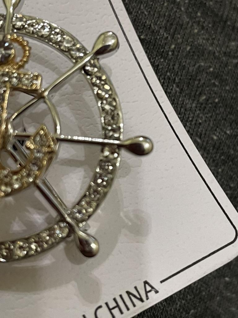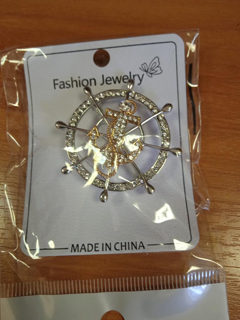 Jewellery review ✨️ broach from BLUCOME This beautiful broach/clothing pin has many uses. Can be worn on a jacket label, a shirt, jumper or scarf, even a hat. It's made with zinc alloy and its very sturdy 😃 The design is an anchor and rudder. With its beautiful diamontes/crystals which shine and glisten with the light it will surely add a touch of glam to any outfit ✨️ The anchor is gold in colour whilst the rest of the broach is silver. The back has a pin which simply slides under the clasp to keep it securely in place on any outfit The weight is 12g and the size is 4.2cm x 4.2cm Thankyou joom and joom seller ❤️