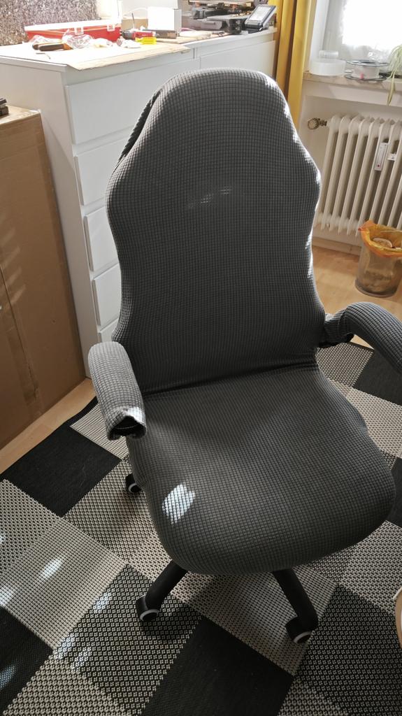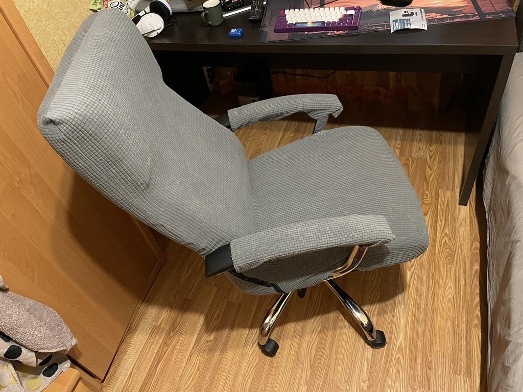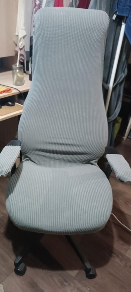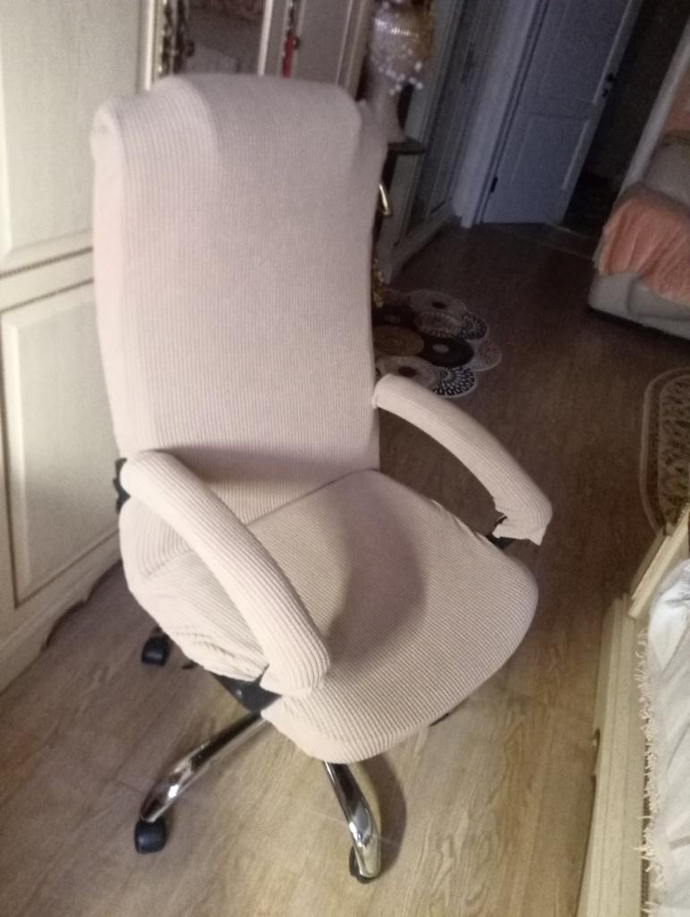 The cover is just great! I took it on an office chair, and pulled a rocking chair on the chair, on the side of the zipper, covers on the armrests with zippers. The material is chic, I recommend it to anyone who needs cases