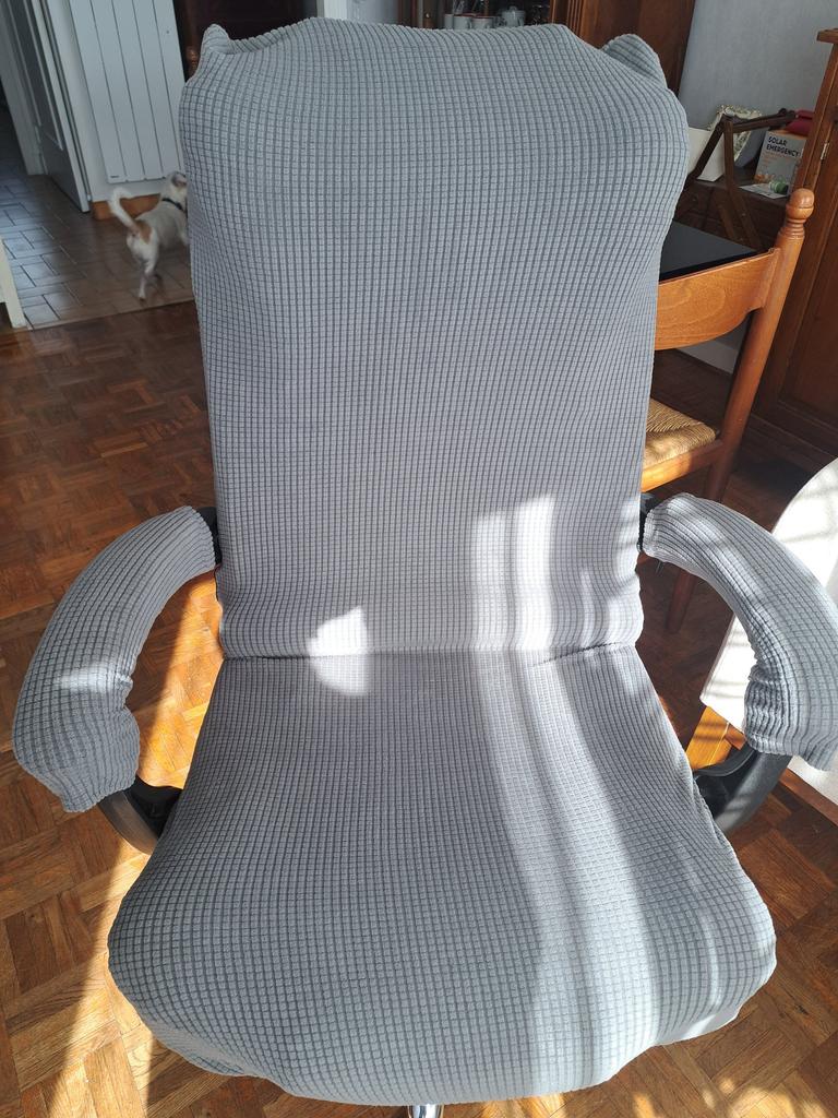 The chair cover is super, I took the largest size, it looks perfect on the chair, I recommend it